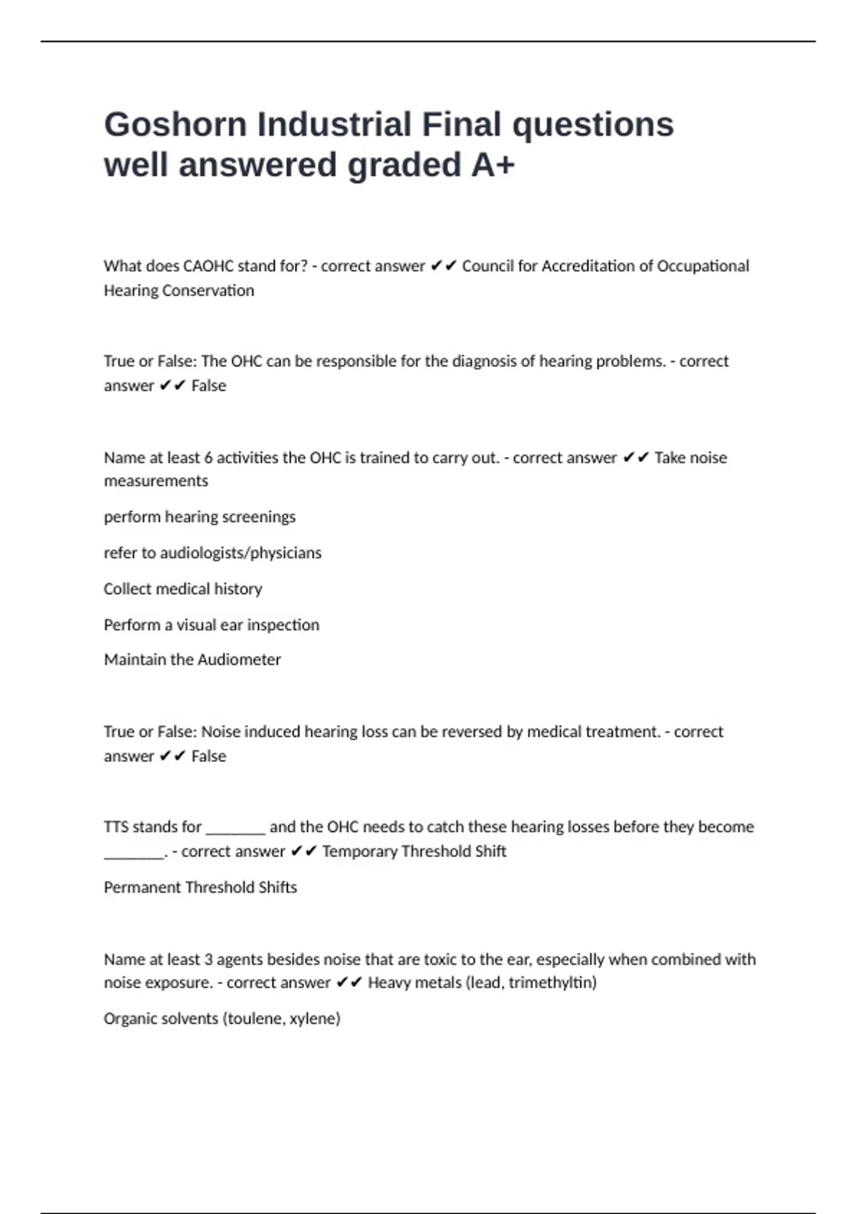 What does CAOHC stand for? - correct answer ✔✔ Council for Accreditation of Occupational