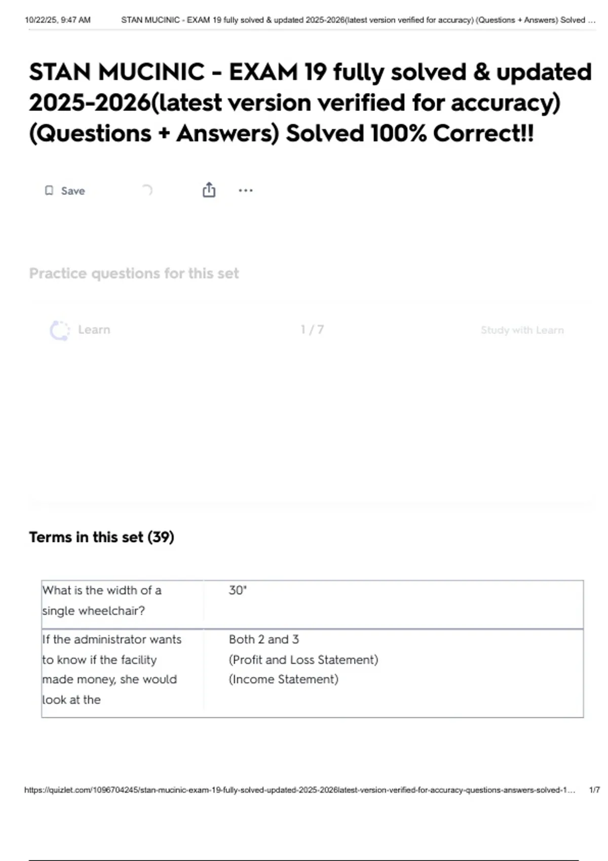 , 10/22/25, 9:47 AM STAN MUCINIC - EXAM 19 fully solved & updated 2025-2026(latest version verified for accuracy) (Questions + Answers) Solved …