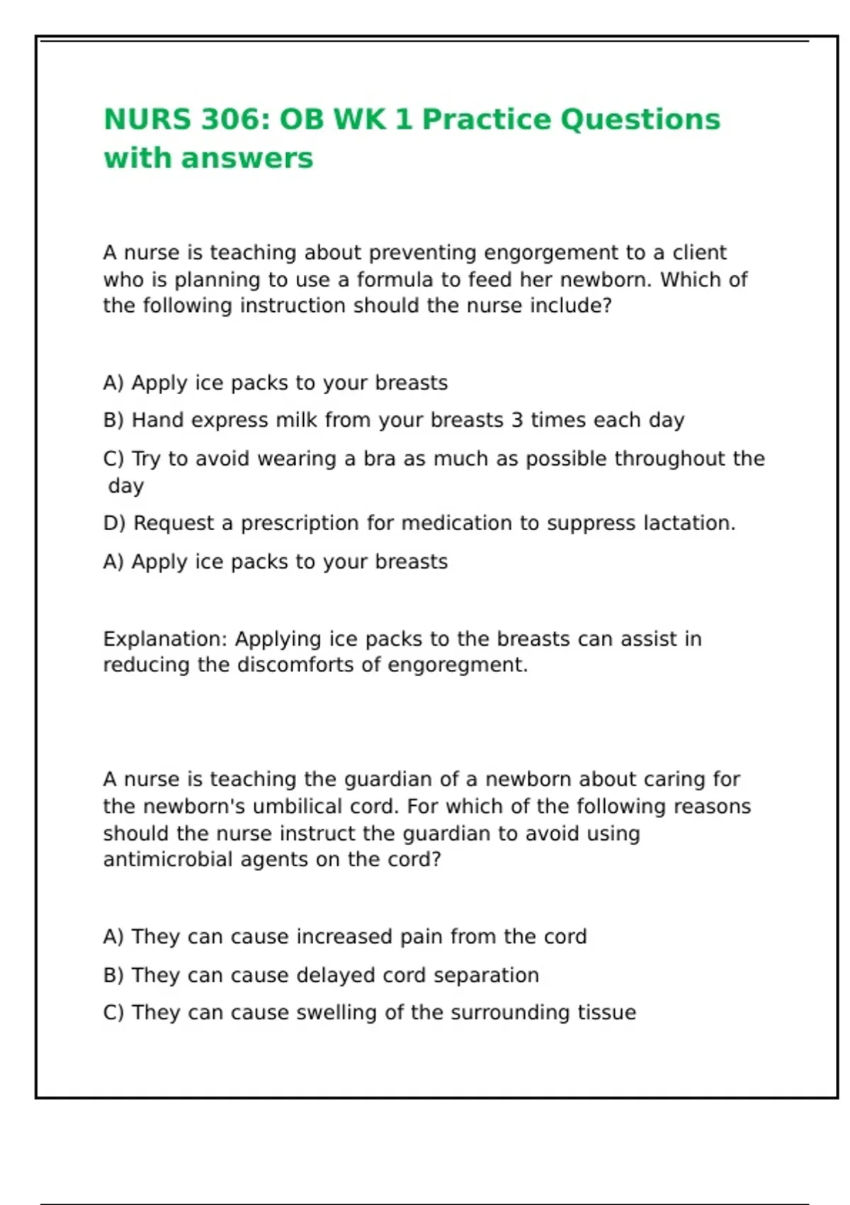 NURS 306: OB WK 1 Practice Questions |\ |\ |\ |\ |\ |\ |\