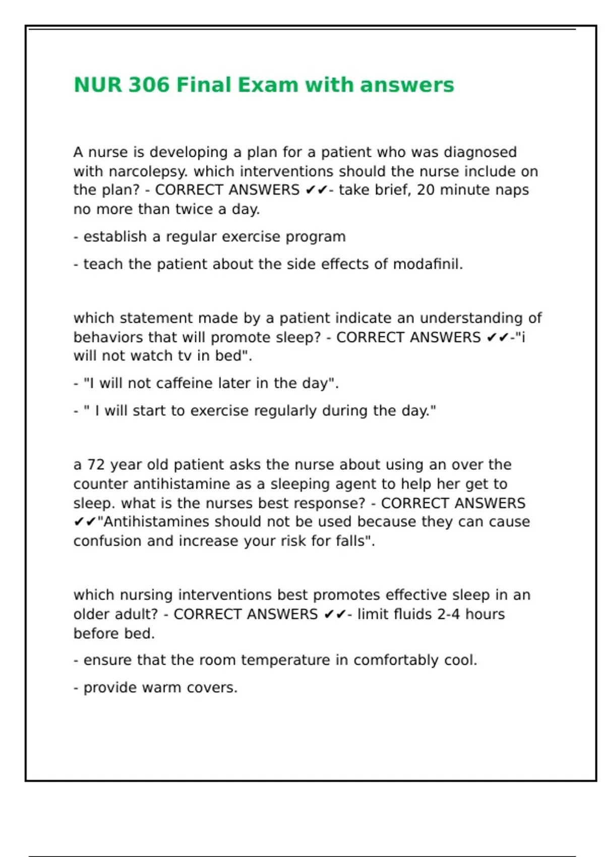 of sleep- hygiene practices? - CORRECT ANSWERS ✔✔" I usually