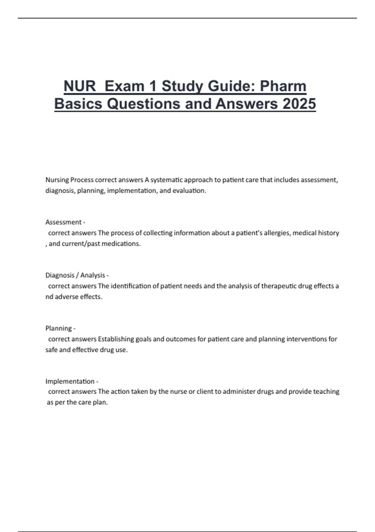 NUR Exam 1 Study Guide: Pharm Basics Questions and Answers 2025