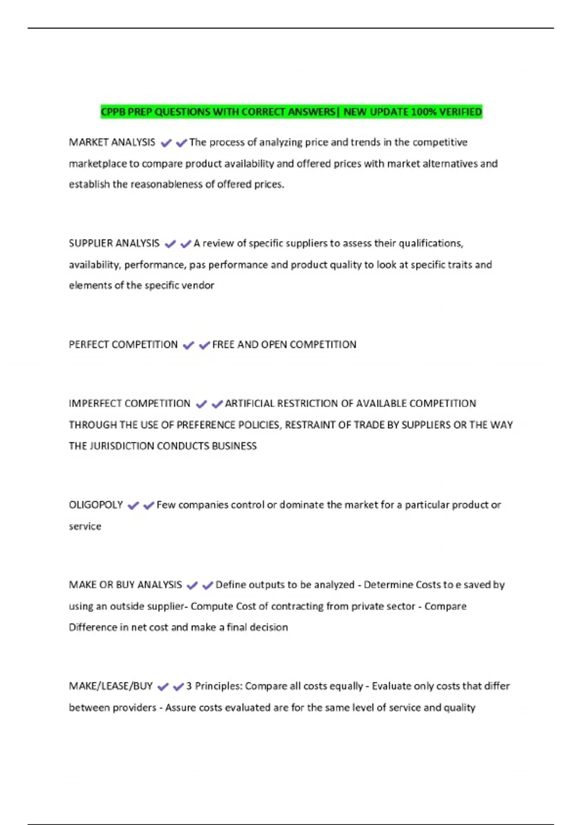 CPPB PREP QUESTIONS WITH CORRECT ANSWERS| NEW UPDATE 100% VERIFIED