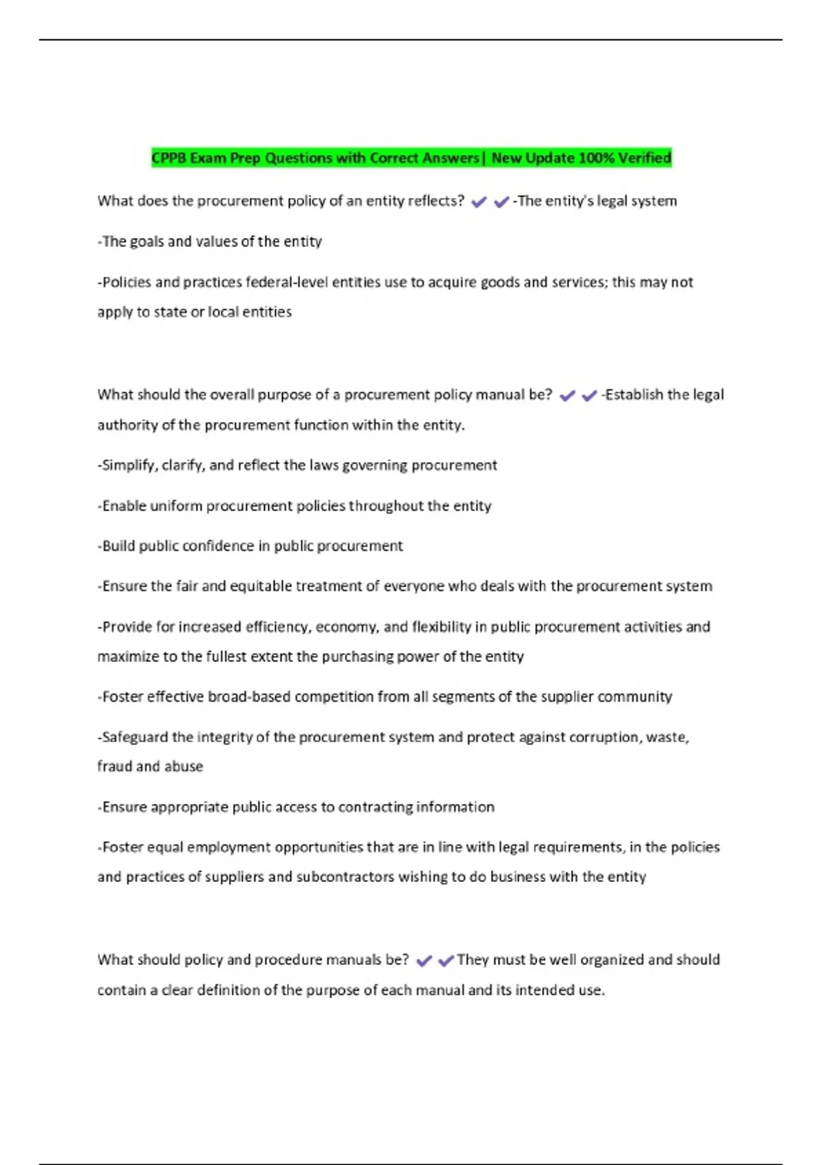 CPPB Exam Prep Questions with Correct Answers| New Update 100% Verified