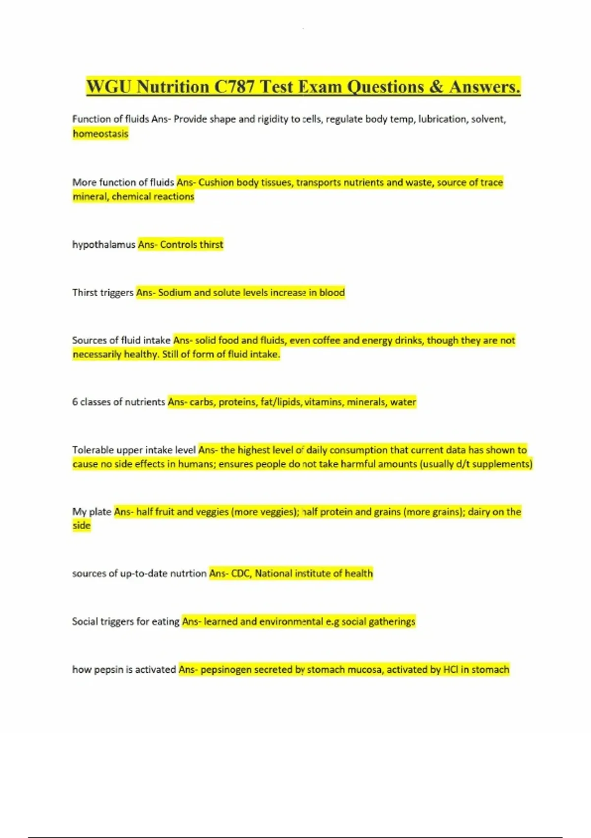 WGU Nutrition C787 Test Exam Questions & Answers.WGU Nutrition C787 Test Exam Questions & Answers.