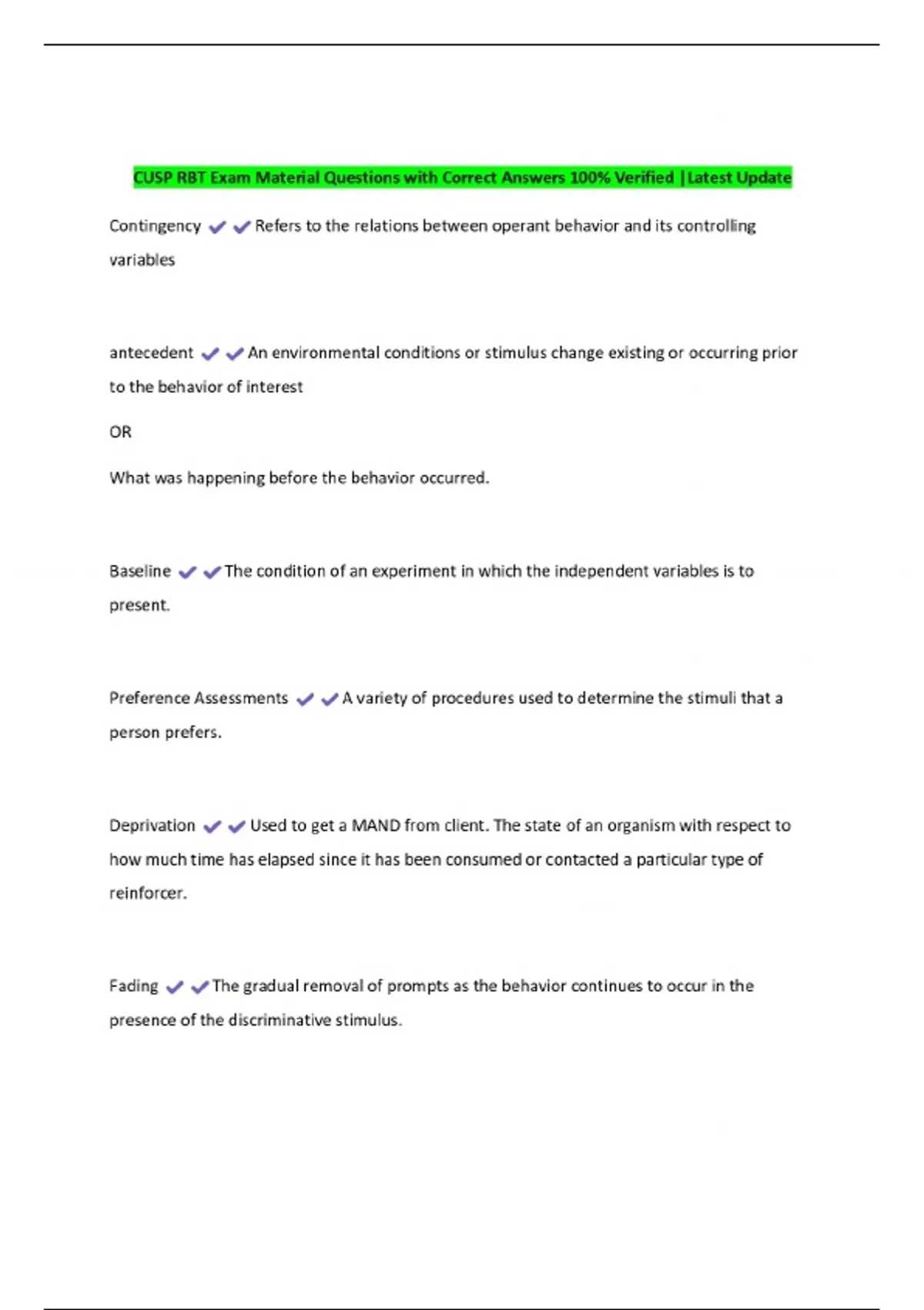 CUSP RBT Exam Material Questions with Correct Answers 100% Verified |Latest Update