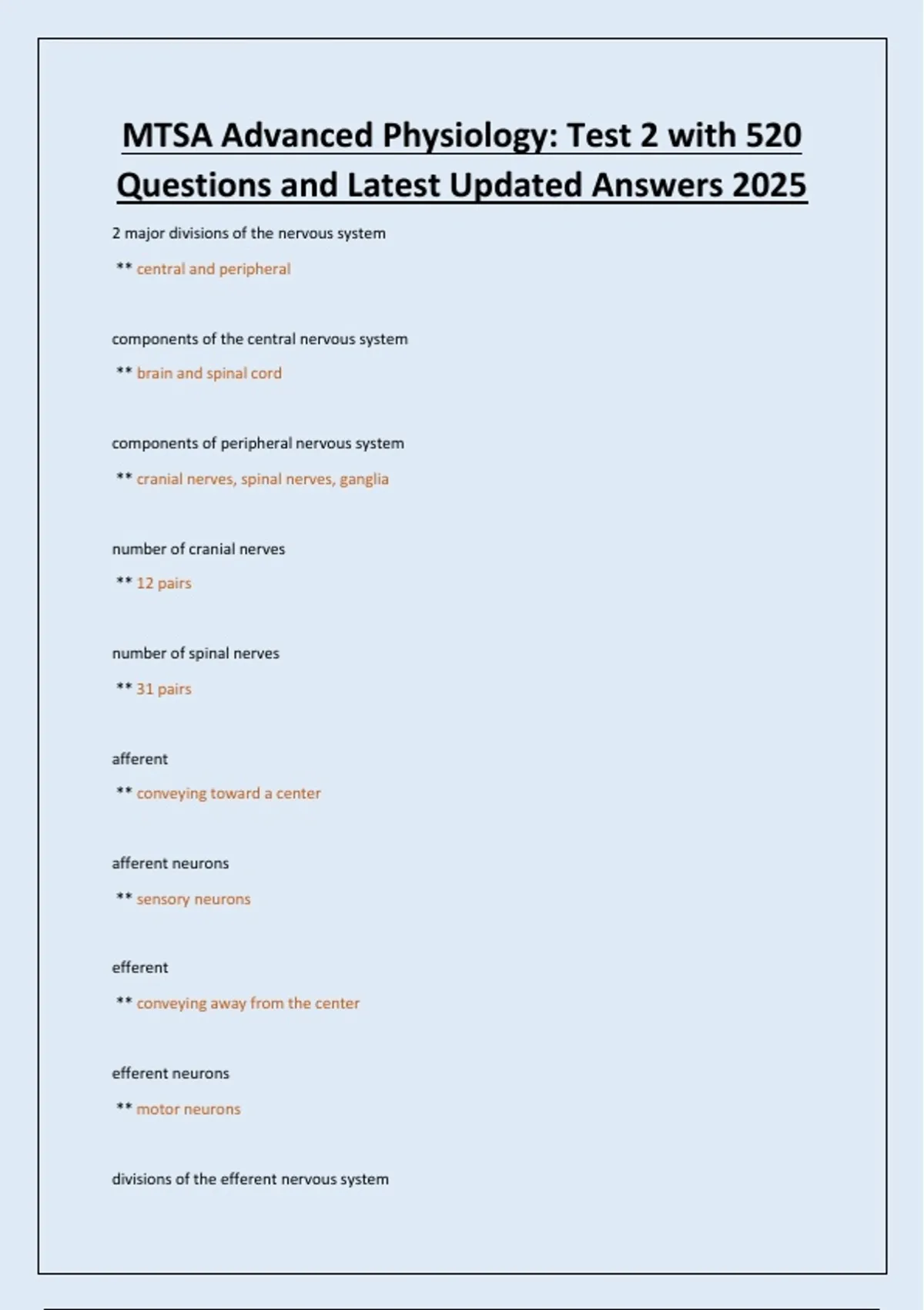 MTSA Advanced Physiology Test 2 with 520 Questions and Latest Updated Answers 2025.
