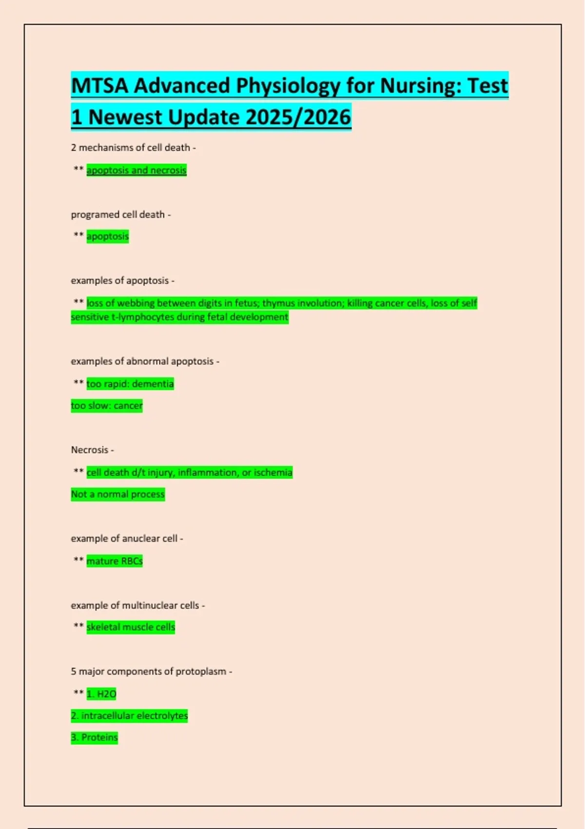 MTSA Advanced Physiology for Nursing: Test
