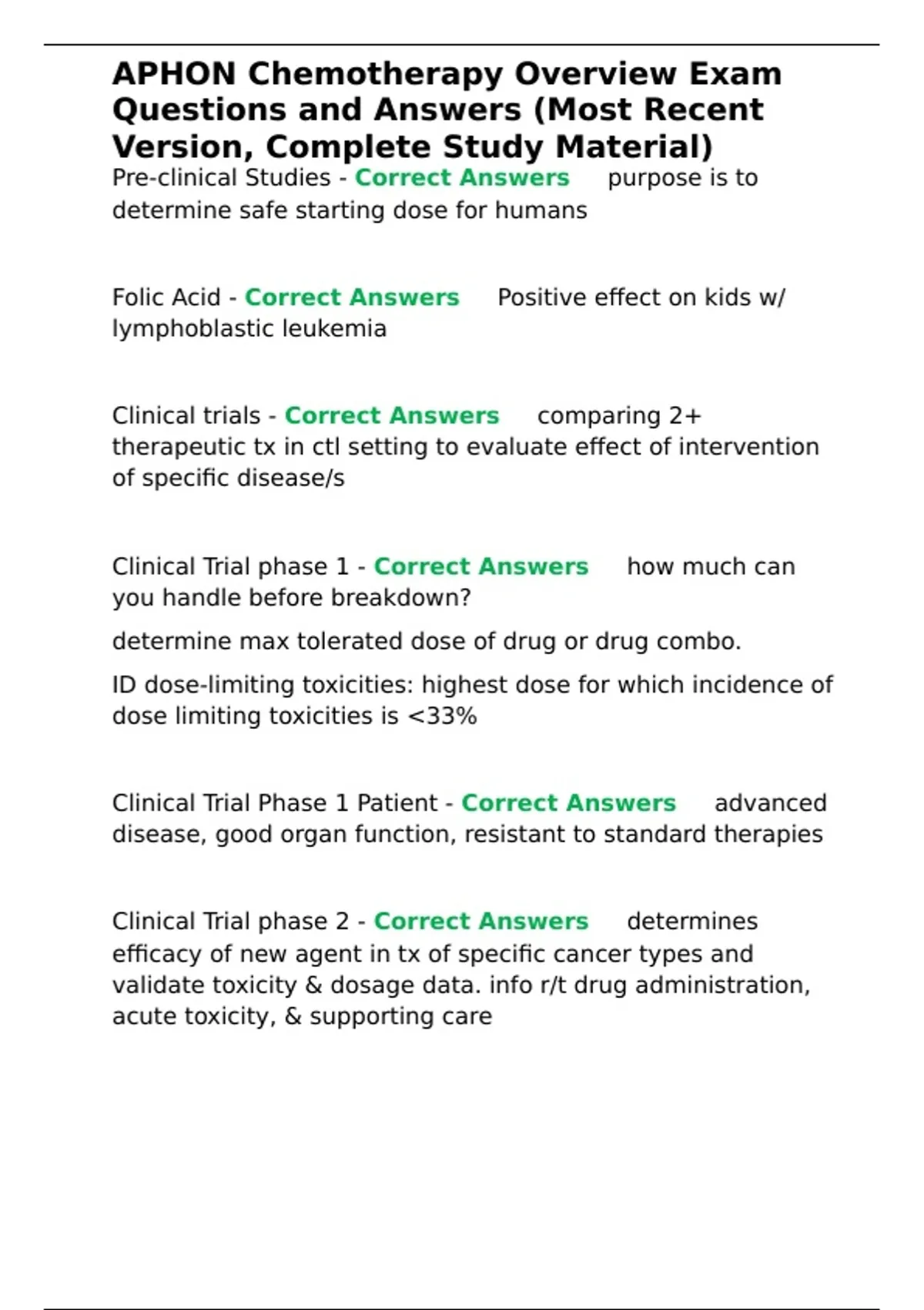 Clinical Trial Phase 1 Patient - Correct Answers ✅advanced