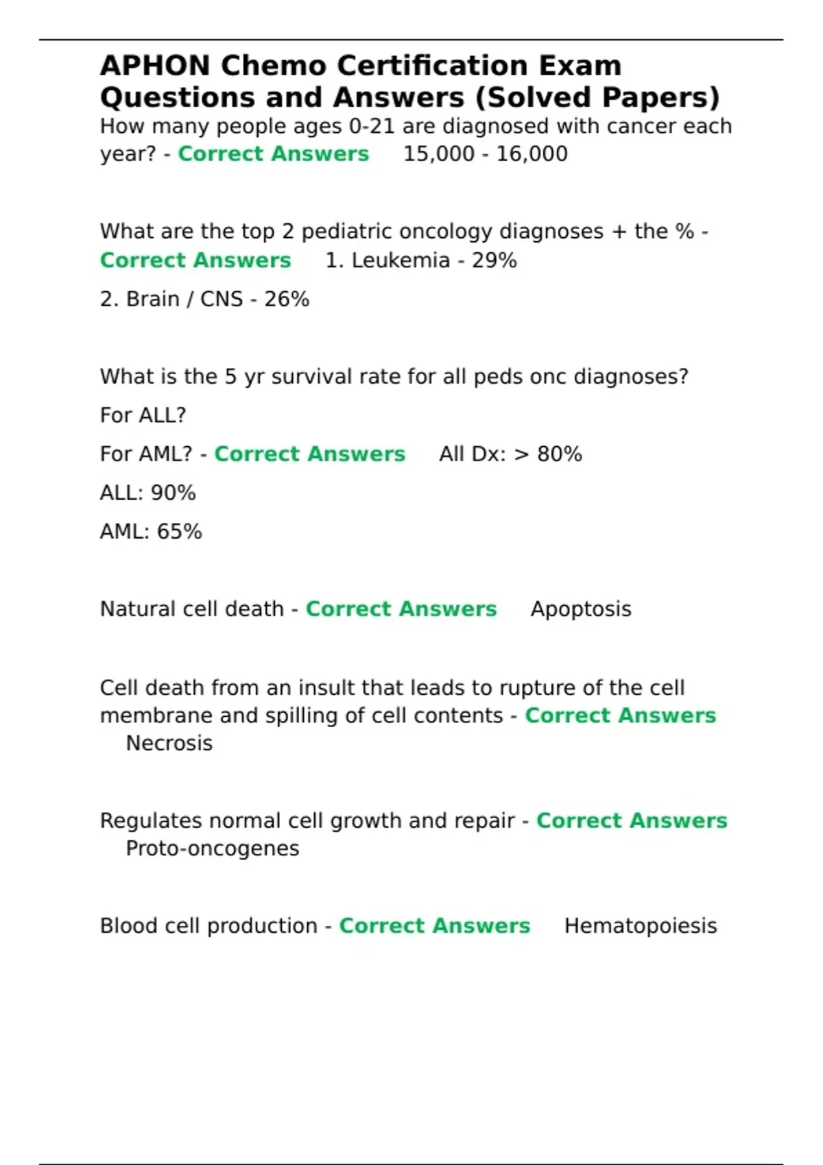 APHON Chemo Certification Exam Questions and Answers (Solved Papers).