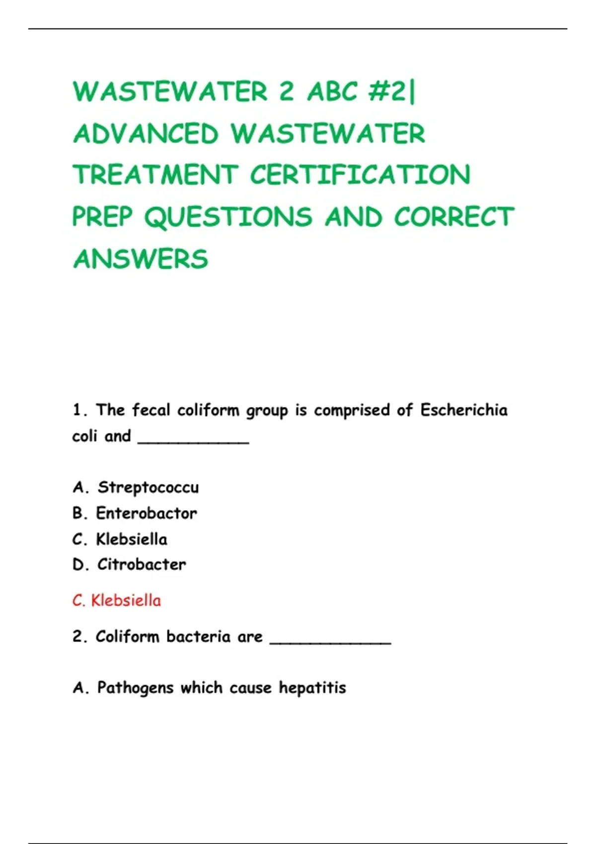 1. The fecal coliform group is comprised of Escherichia