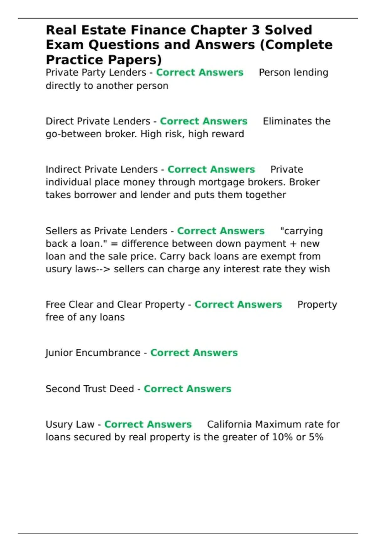 Sellers as Private Lenders - Correct Answers ✅"carrying