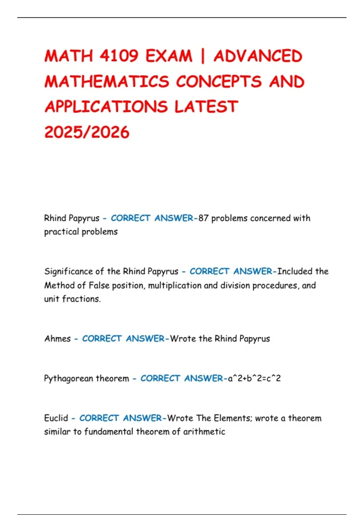 MATH 4109 EXAM | ADVANCED