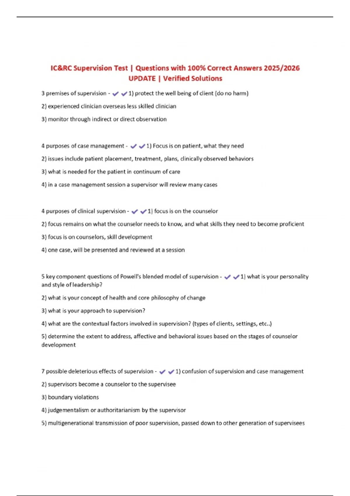 IC&RC Supervision Test | Questions with 100% Correct Answers 2025/2026 UPDATE | Verified Solutions
