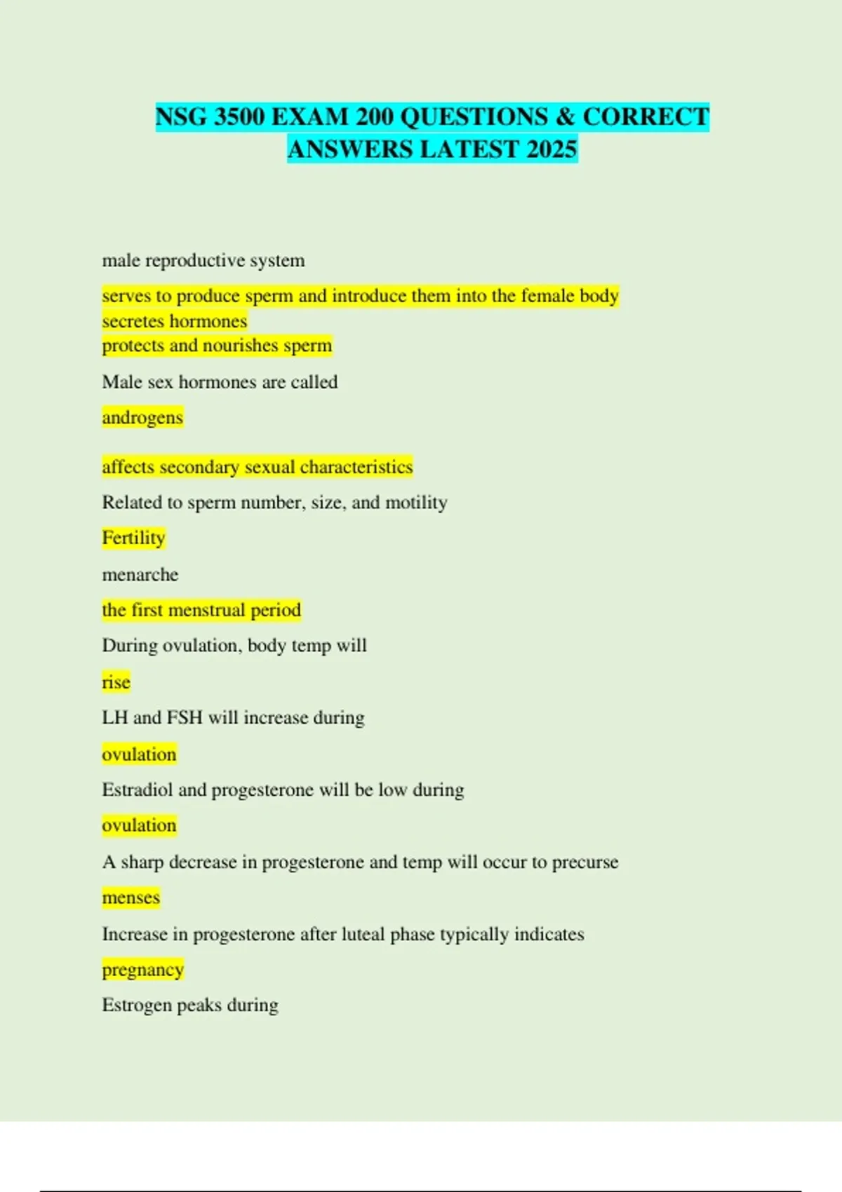 NSG 3500 EXAM 200 QUESTIONS & CORRECT