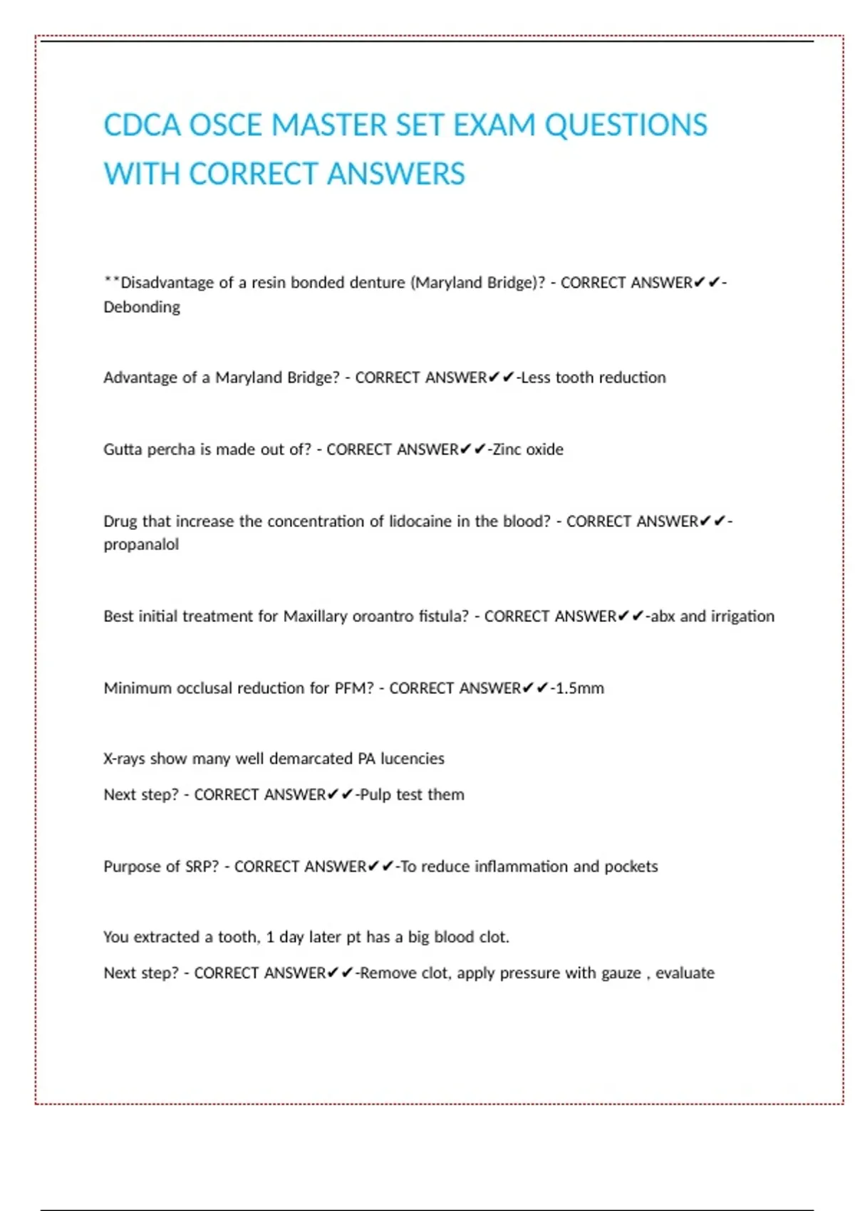 CDCA OSCE MASTER SET EXAM QUESTIONS