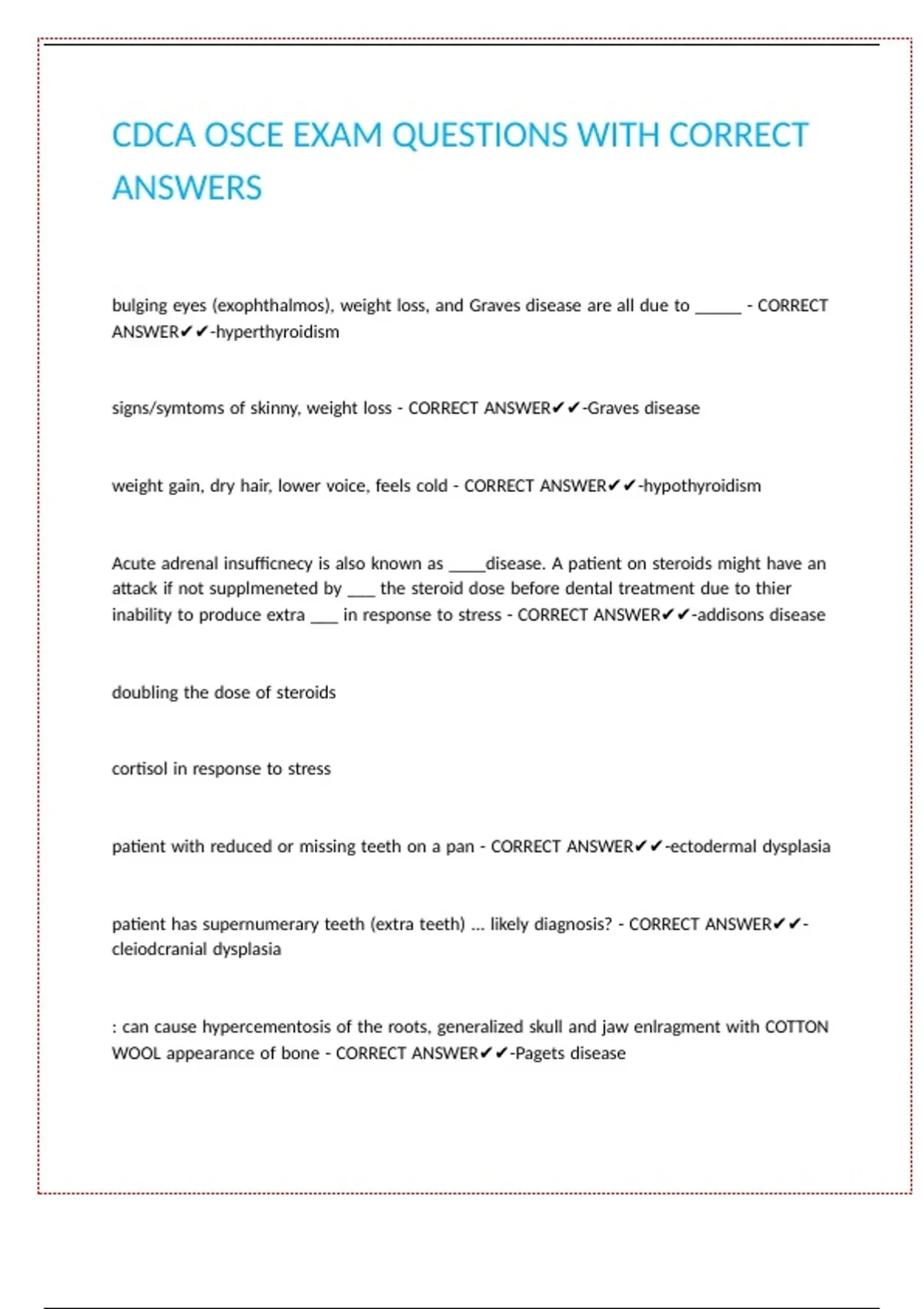 CDCA OSCE EXAM QUESTIONS WITH CORRECT