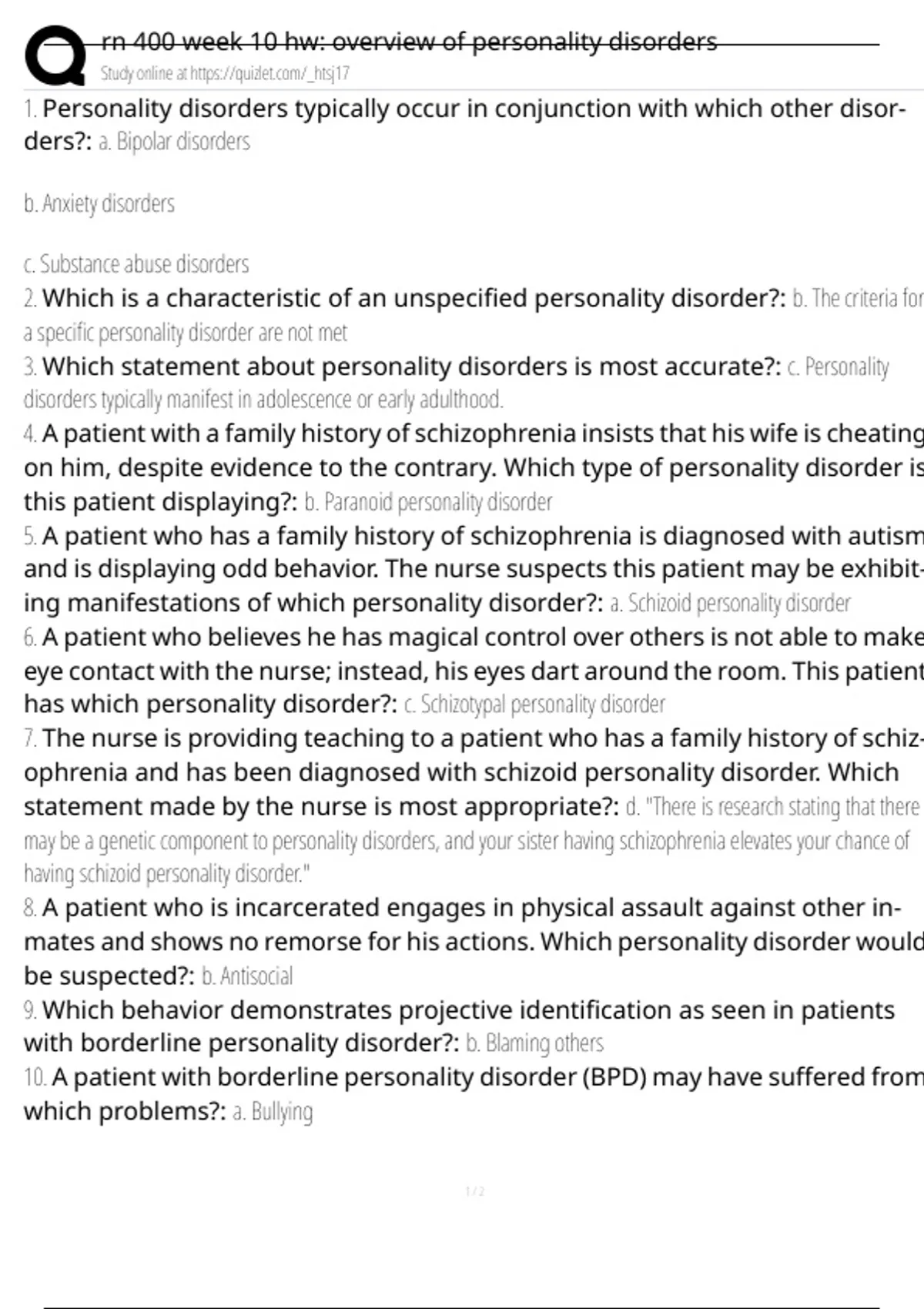 3. Which statement about personality disorders is most accurate?: c. Personality