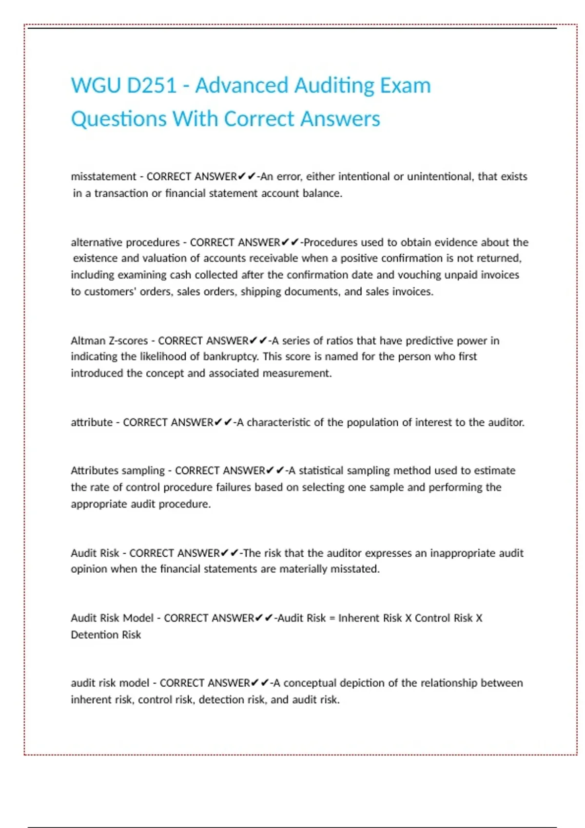 WGU D251 - Advanced Auditing Exam Questions With Correct Answers