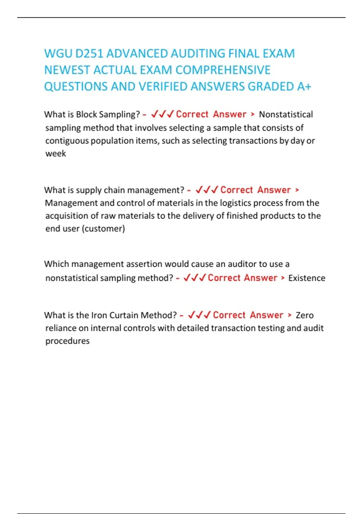 WGU D251 ADVANCED AUDITING FINAL EXAM NEWEST ACTUAL EXAM COMPREHENSIVE QUESTIONS AND VERIFIED ANSWERS GRADED A+