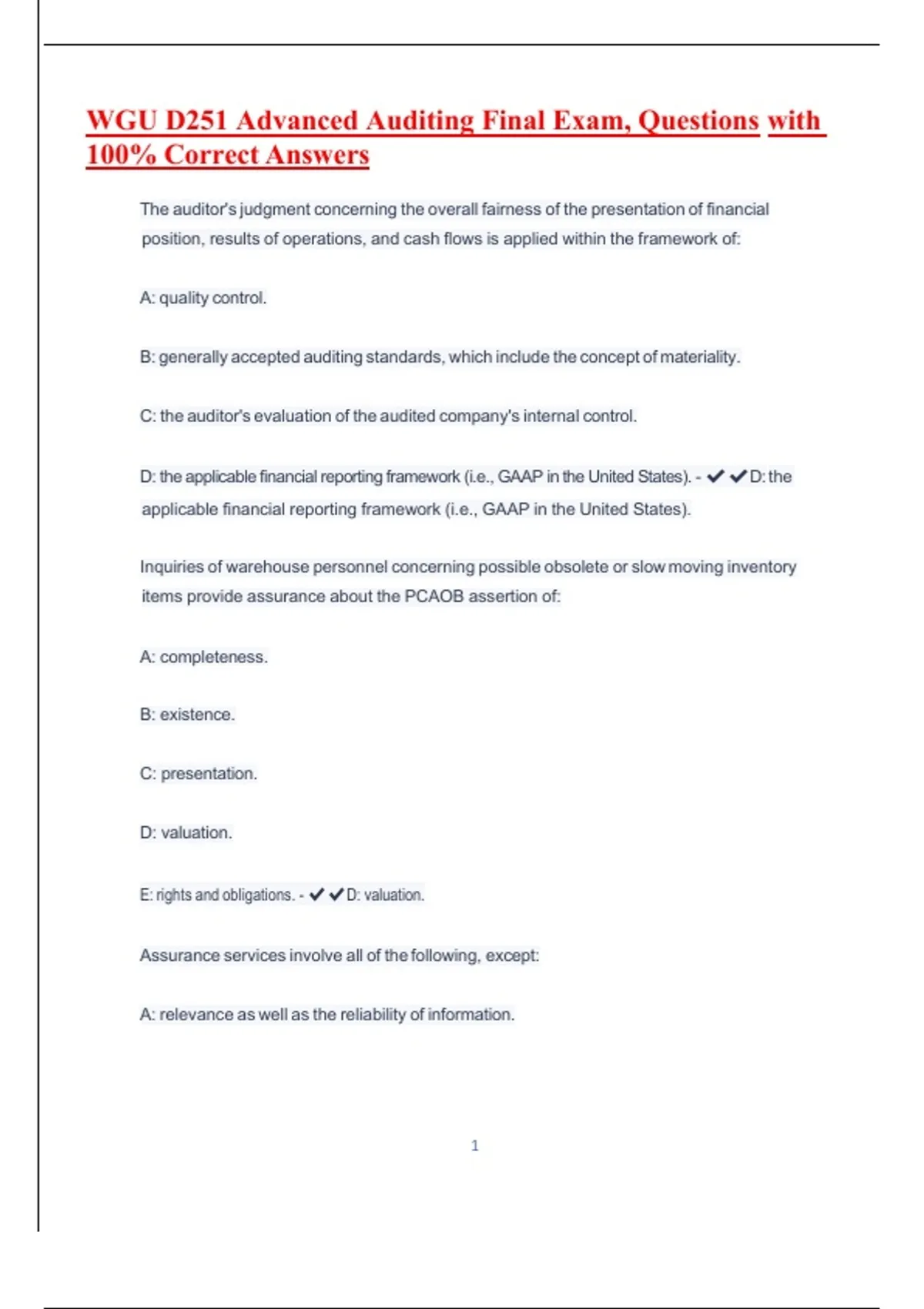 WGU D251 Advanced Auditing Final Exam, Questions with