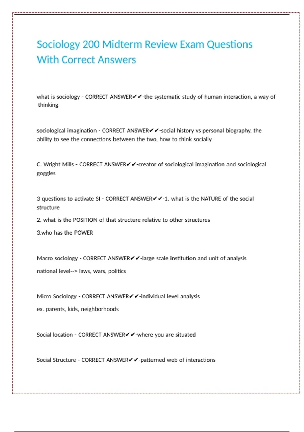 Sociology 200 Midterm Review Exam Questions With Correct Answers.