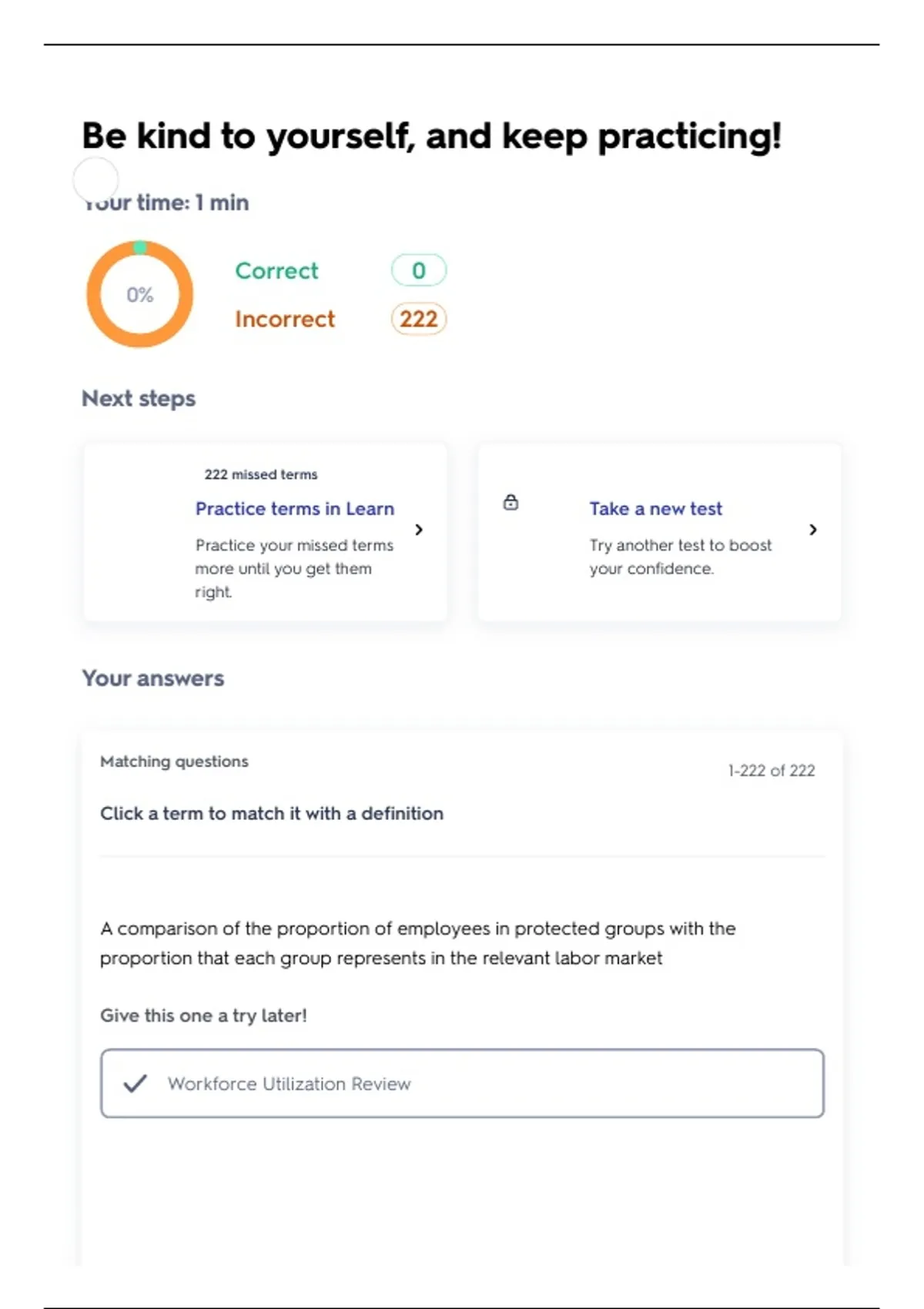 Practice your missed terms Try another test to boost