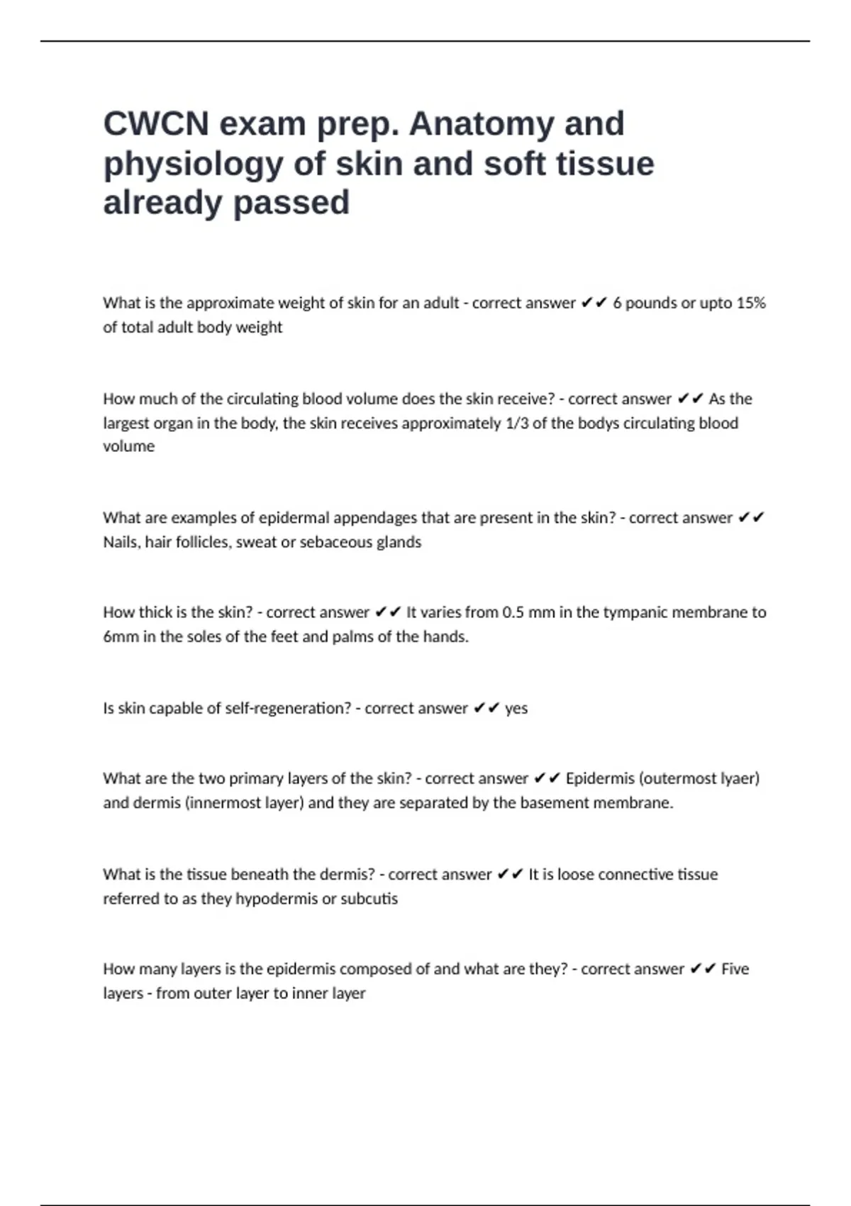 CWCN exam prep. Anatomy and physiology of skin and soft tissue already passed