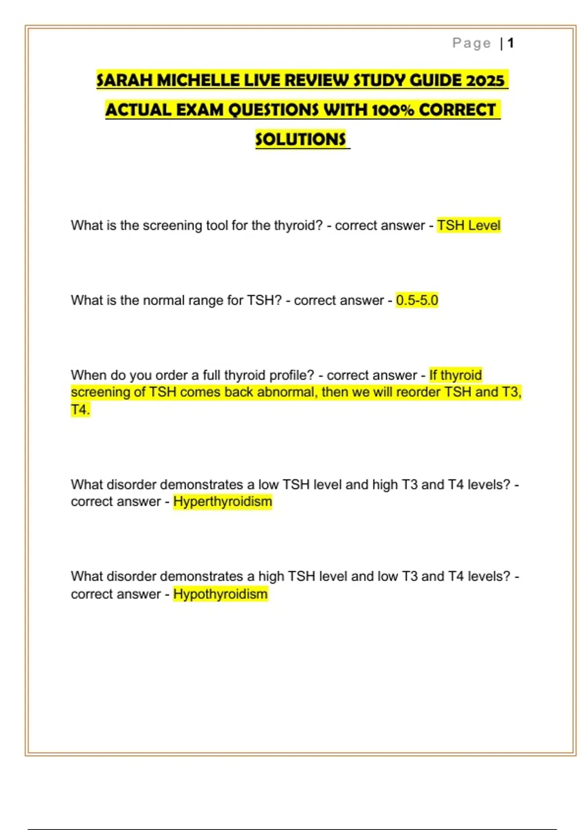 SARAH MICHELLE LIVE REVIEW STUDY GUIDE 2025