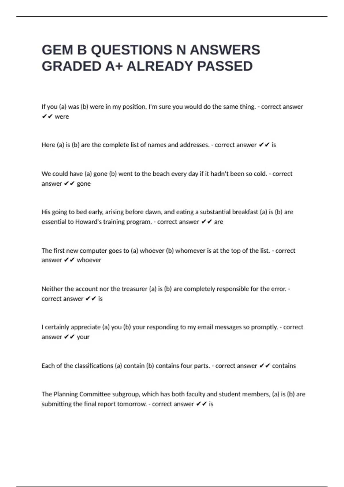 GEM B QUESTIONS N ANSWERS GRADED A+ ALREADY PASSED
