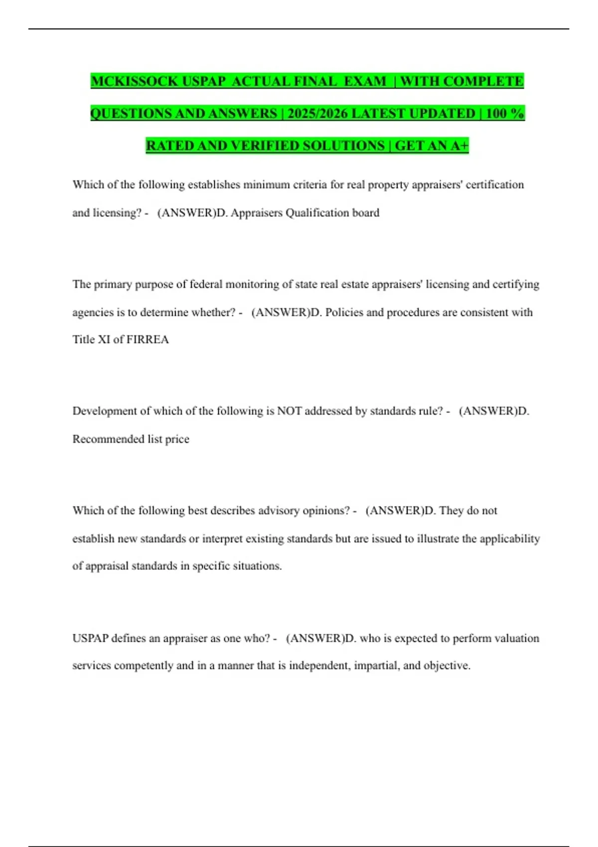 QUESTIONS AND ANSWERS | 2025/2026 LATEST UPDATED | 100 %