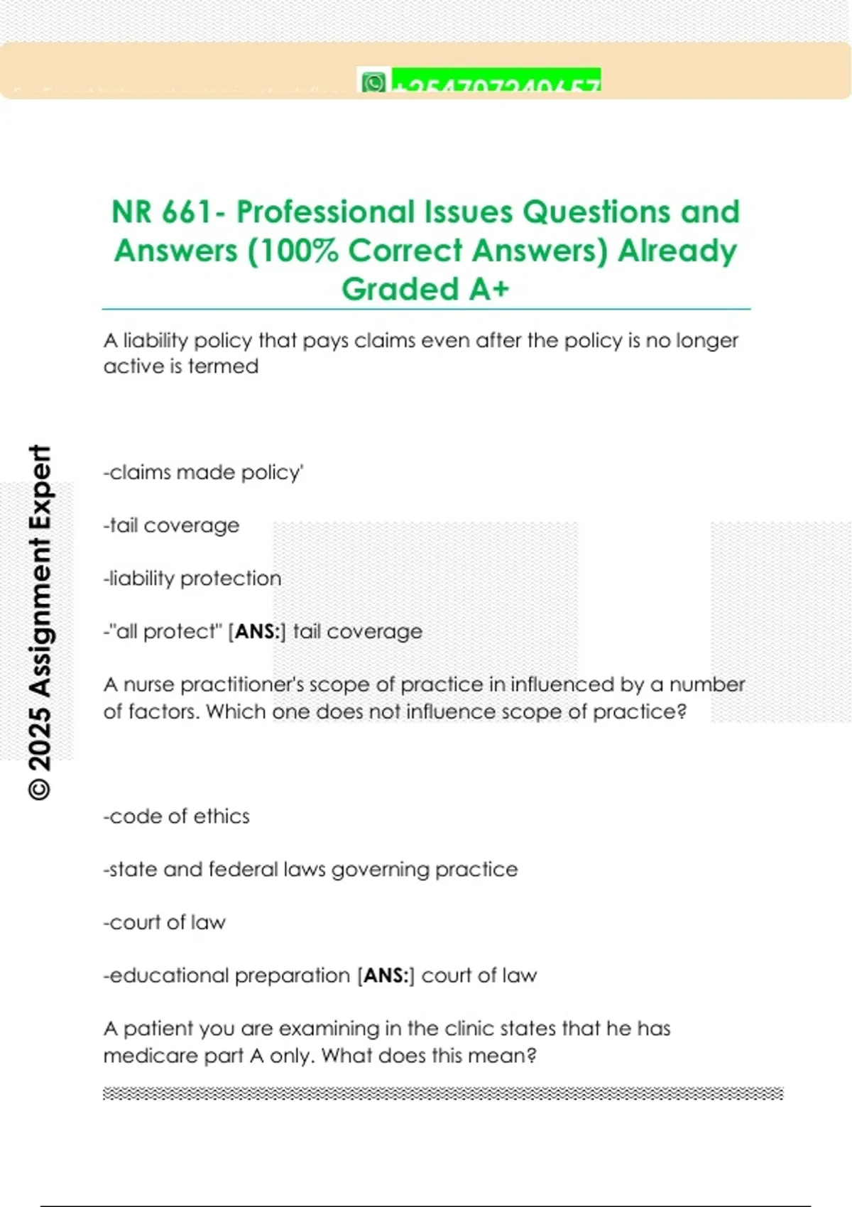 NR 661- Professional Issues Questions and Answers (100% Correct Answers) Already Graded A+
