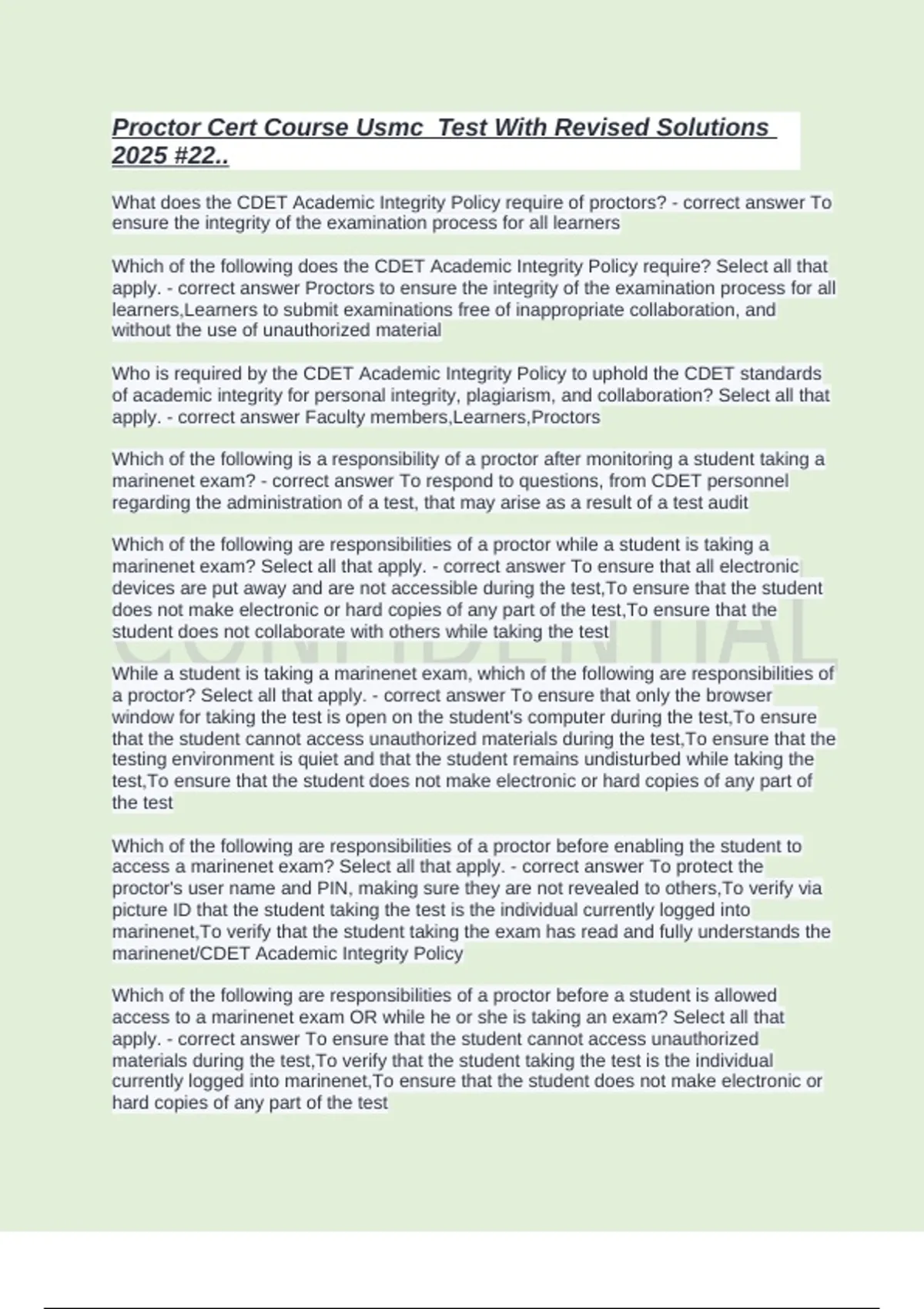 Proctor Cert Course Usmc Test With Revised Solutions 2025 -22...