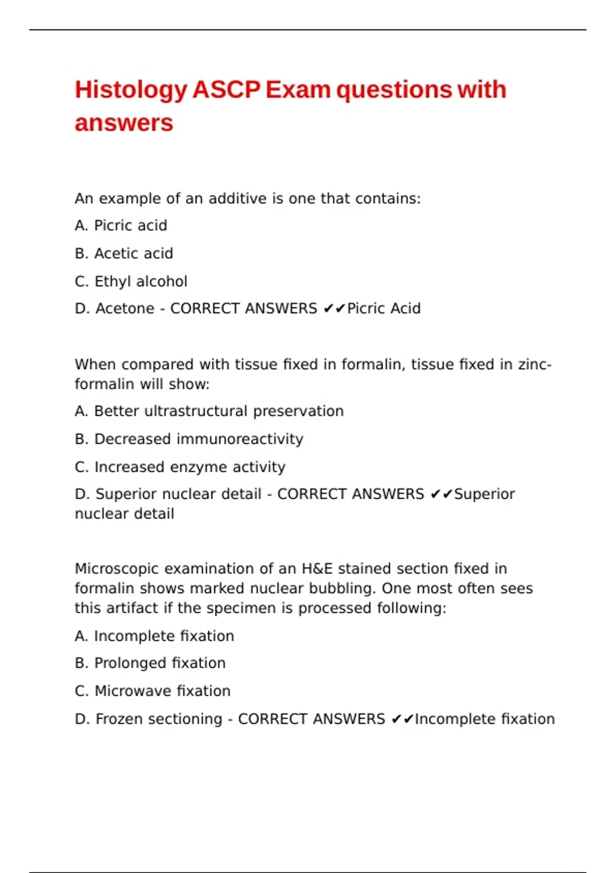 D. Not formalin - CORRECT ANSWERS ✔✔Acidified with acetic