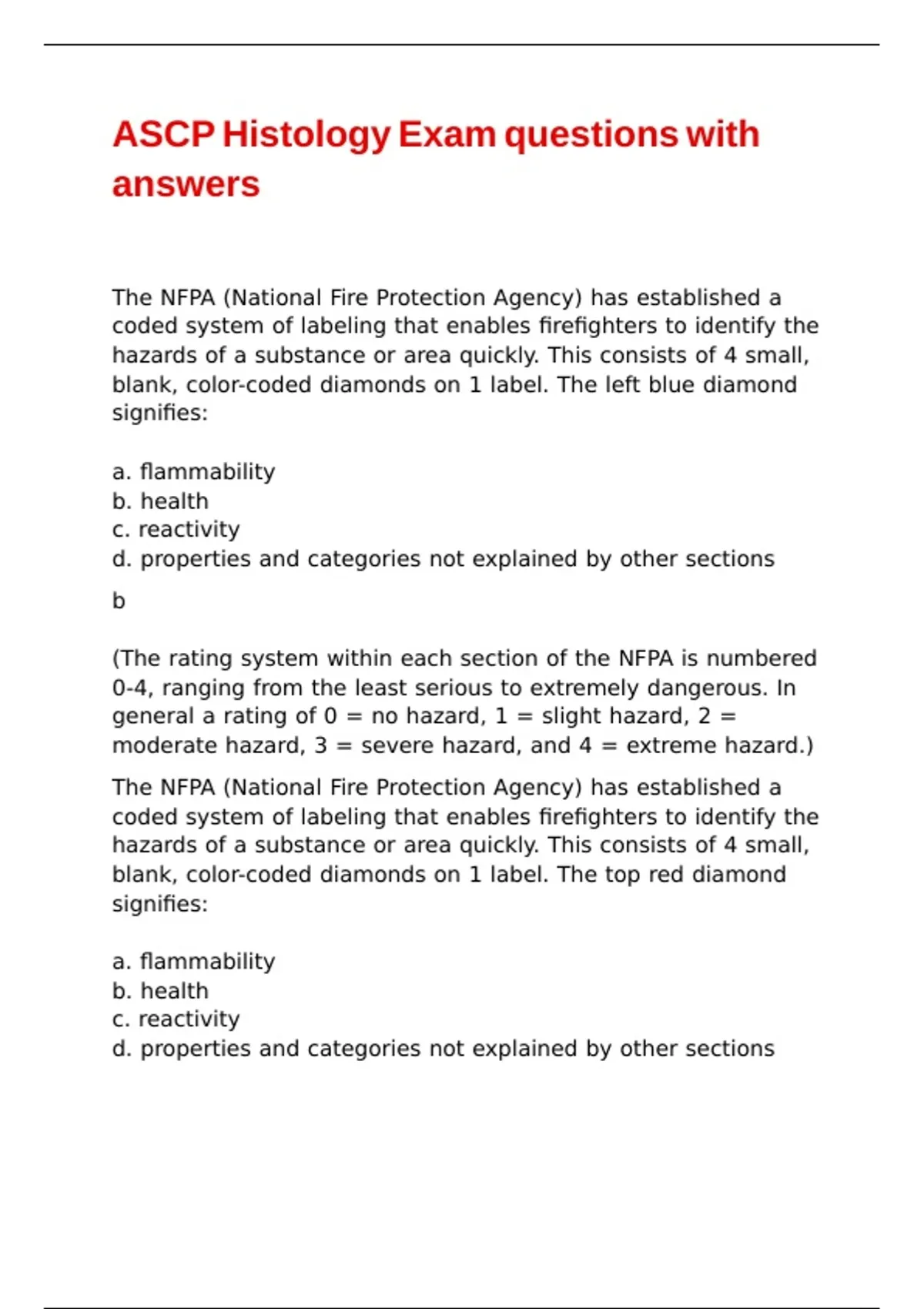 (The rating system within each section of the NFPA is numbered