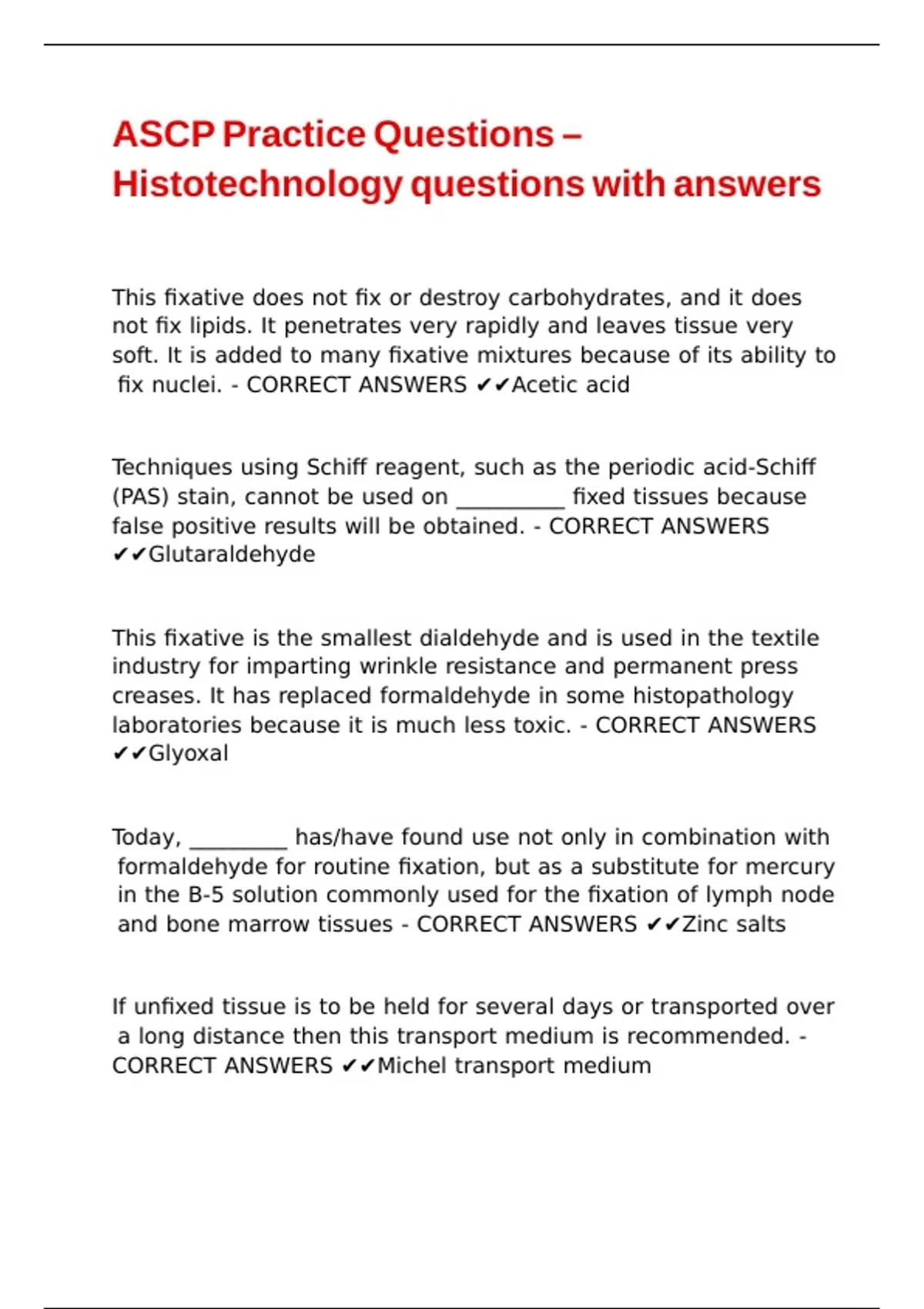 ASCP Practice Questions – Histotechnology questions with answers
