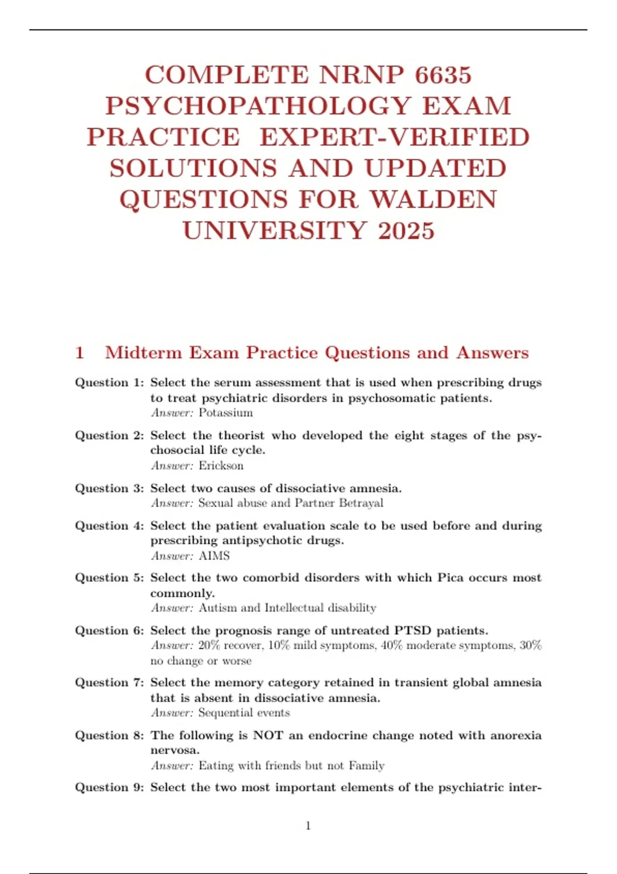 1 Midterm Exam Practice Questions and Answers