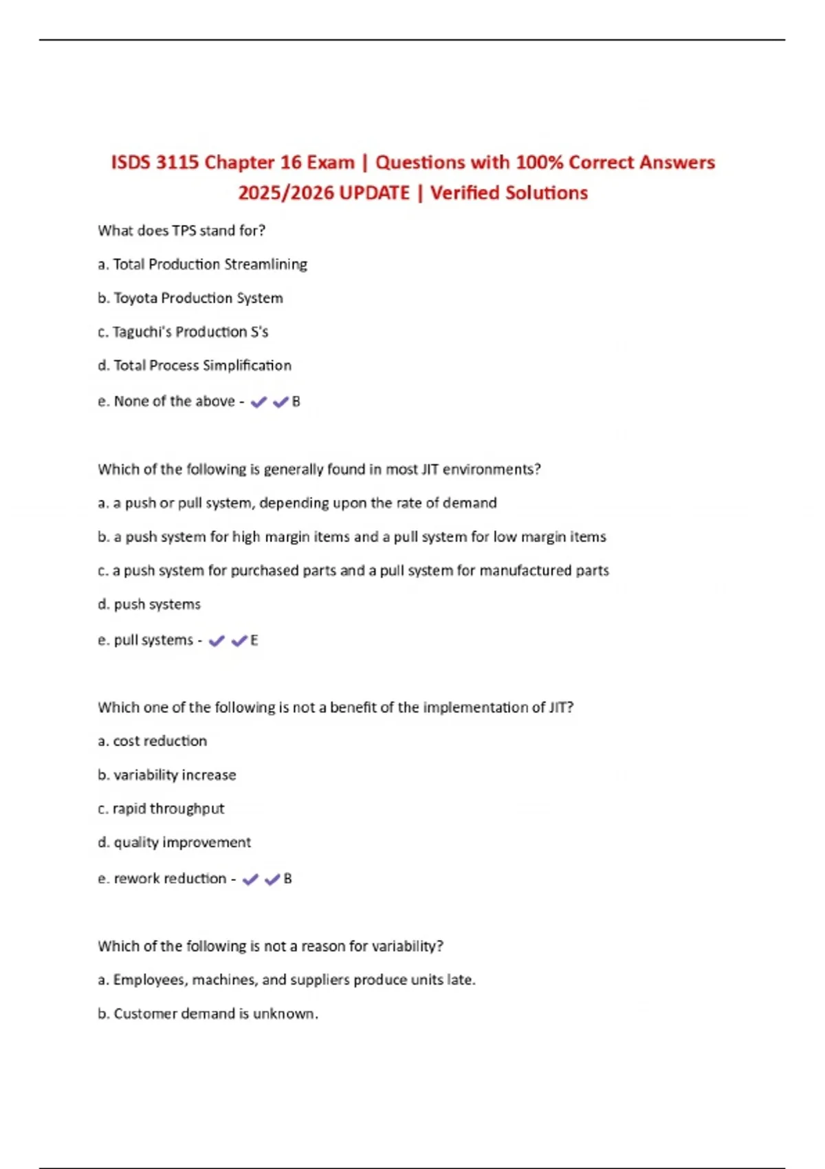 ISDS 3115 Chapter 16 Exam | Questions with 100% Correct Answers 2025/2026 UPDATE | Verified Solutions