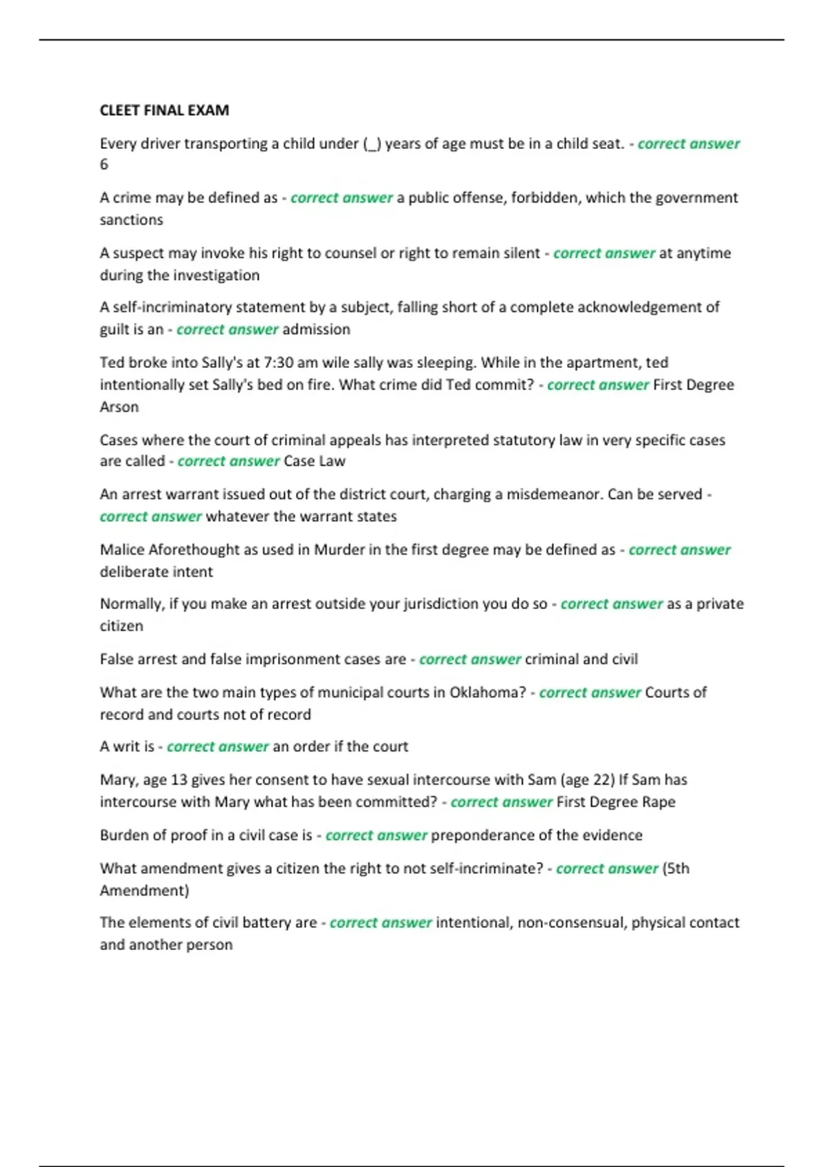 CLEET Final Exam + final Study Guide with Correct Answers – Latest Edition A+