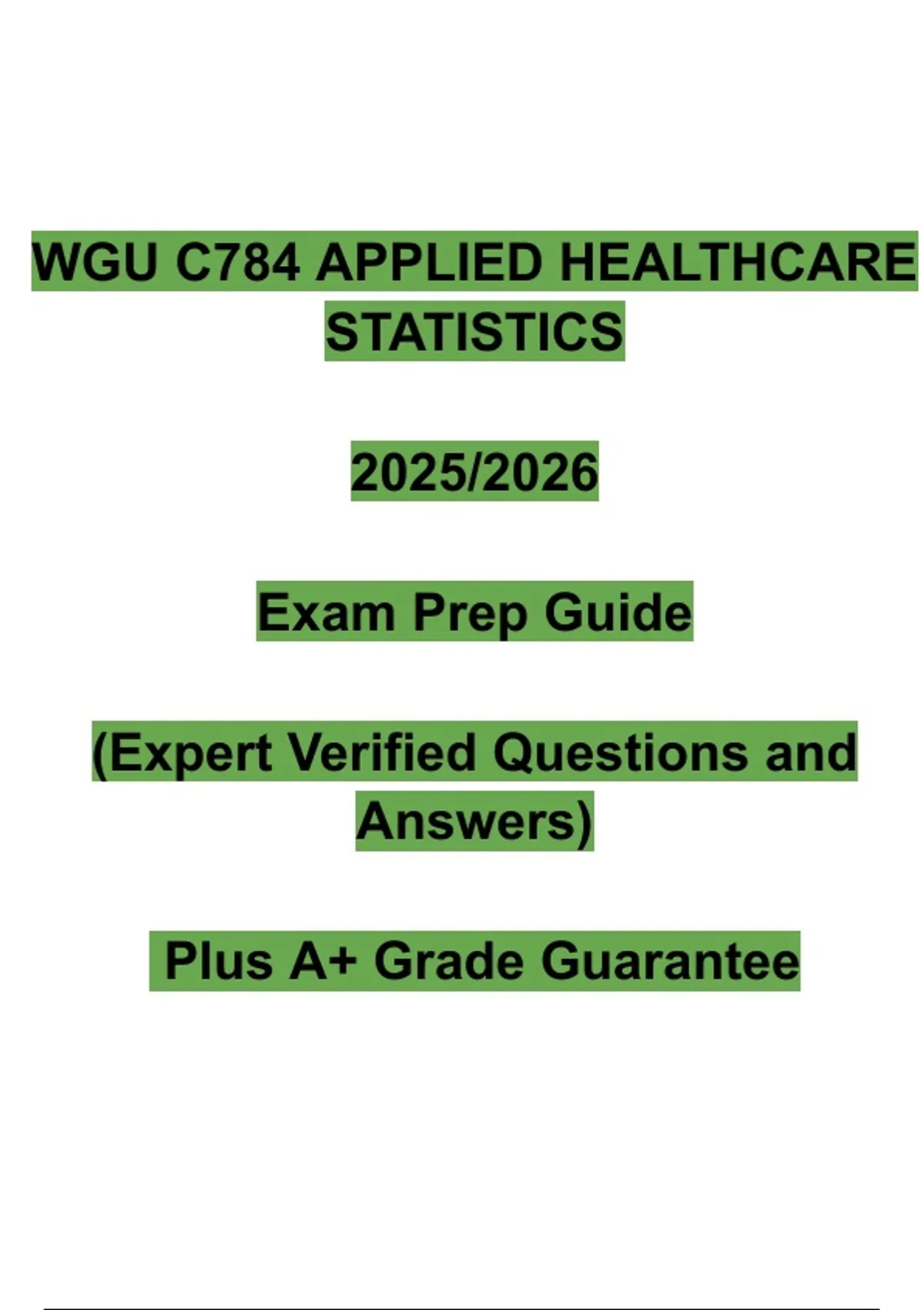 WGU C784 Applied Healthcare Statistics Exam Prep Guide 2025/2026 | Verified Questions, Detailed Answers & Study Notes