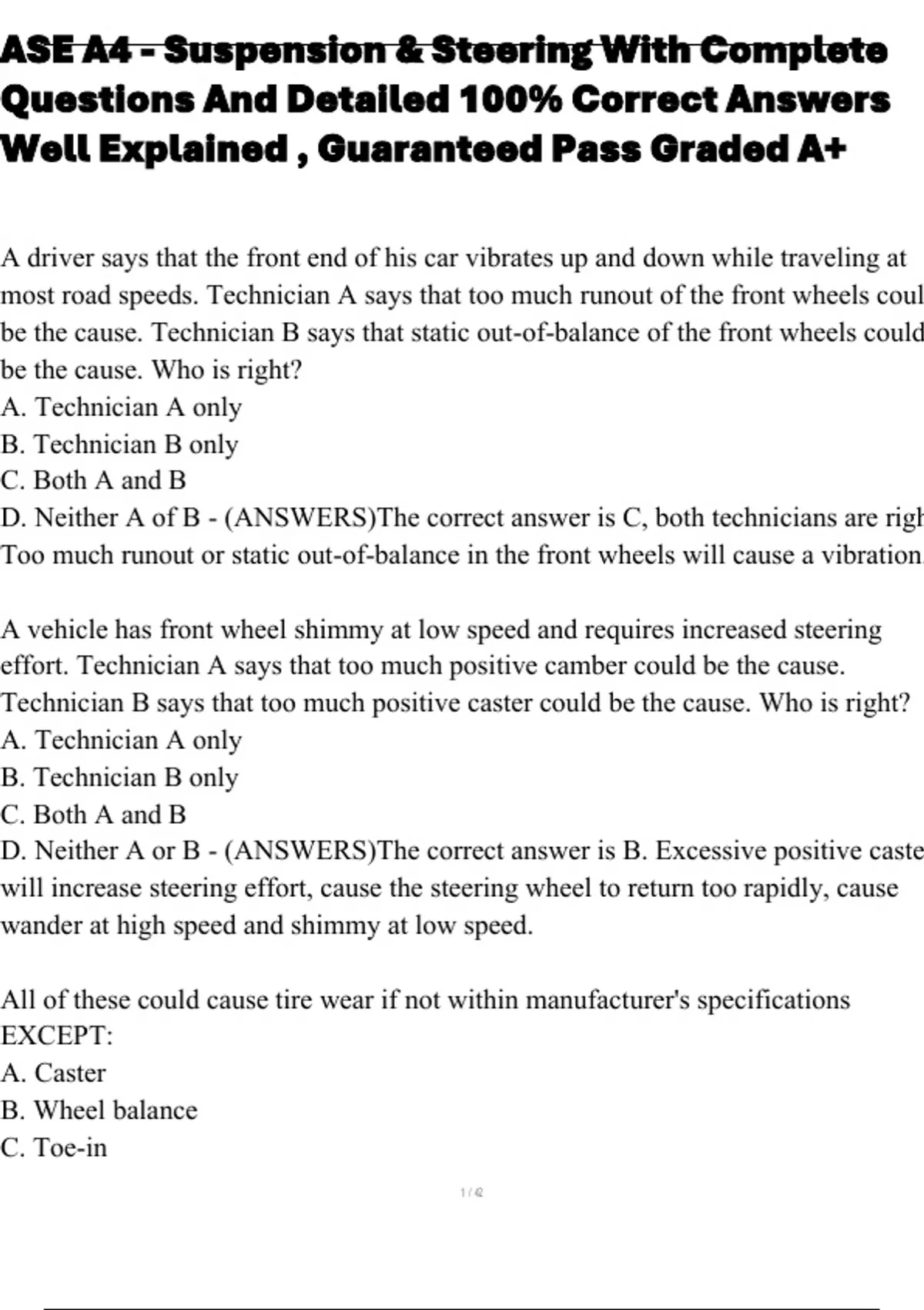 D. Camber - (ANSWERS)The correct answer is A. Caster that is out of specificatio