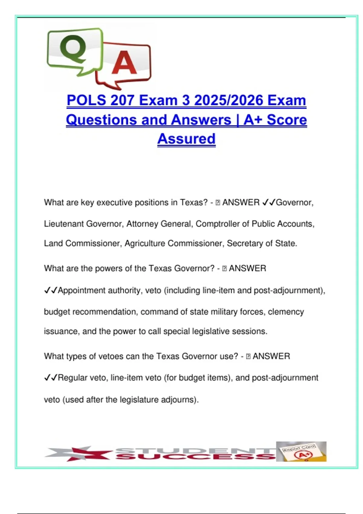What are key executive positions in Texas? - 🧠 ANSWER ✔✔Governor,