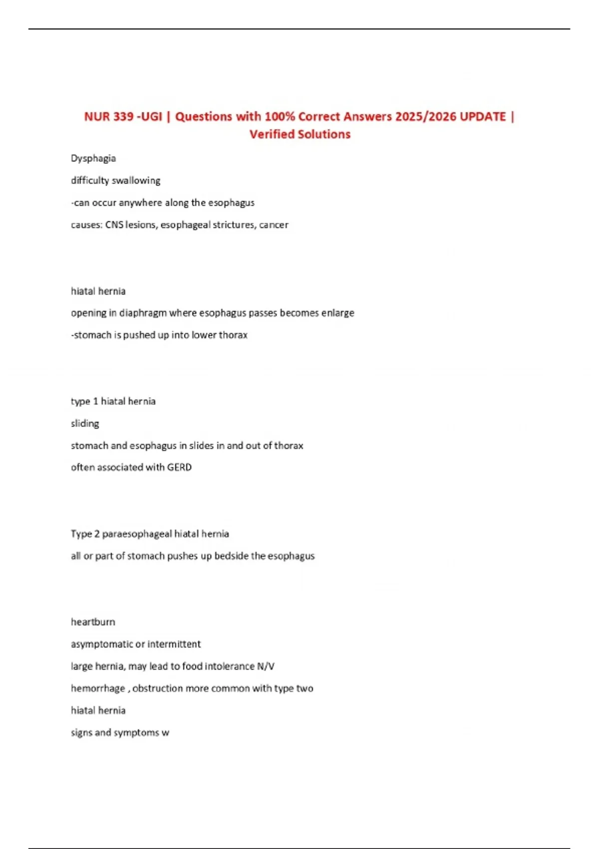 NUR 339 -UGI | Questions with 100% Correct Answers 2025/2026 UPDATE | Verified Solutions
