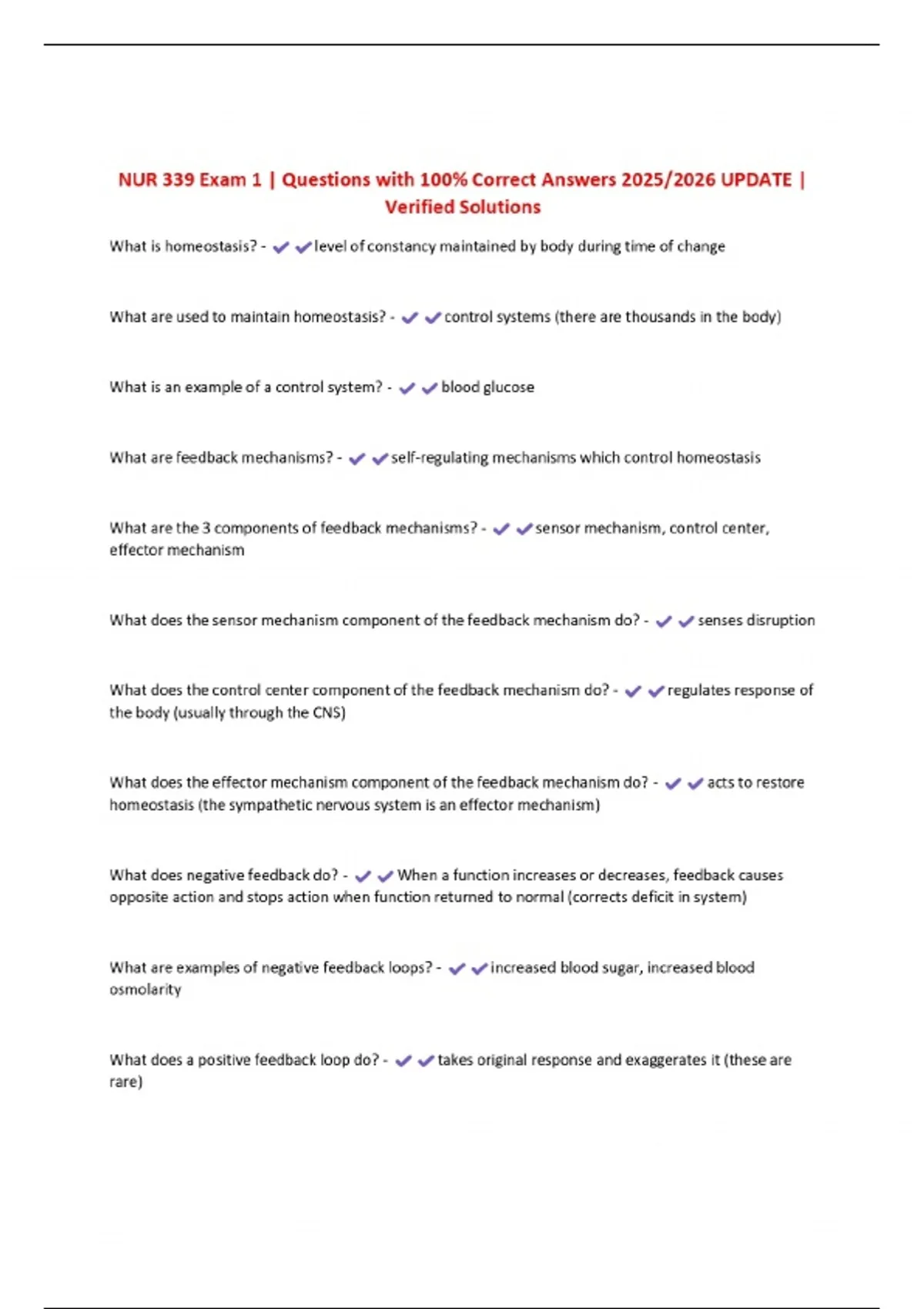 NUR 339 Exam 1 | Questions with 100% Correct Answers 2025/2026 UPDATE | Verified Solutions