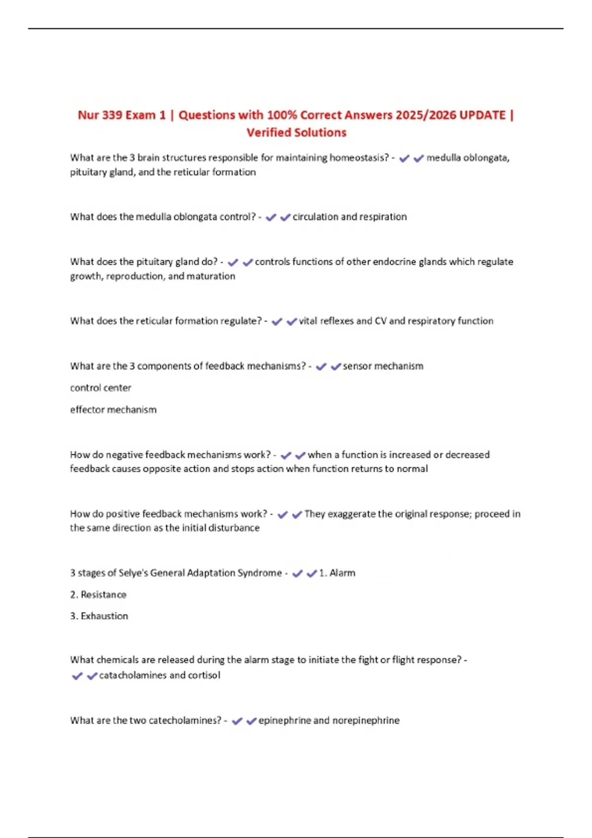 Nur 339 Exam 1 | Questions with 100% Correct Answers 2025/2026 UPDATE | Verified Solutions