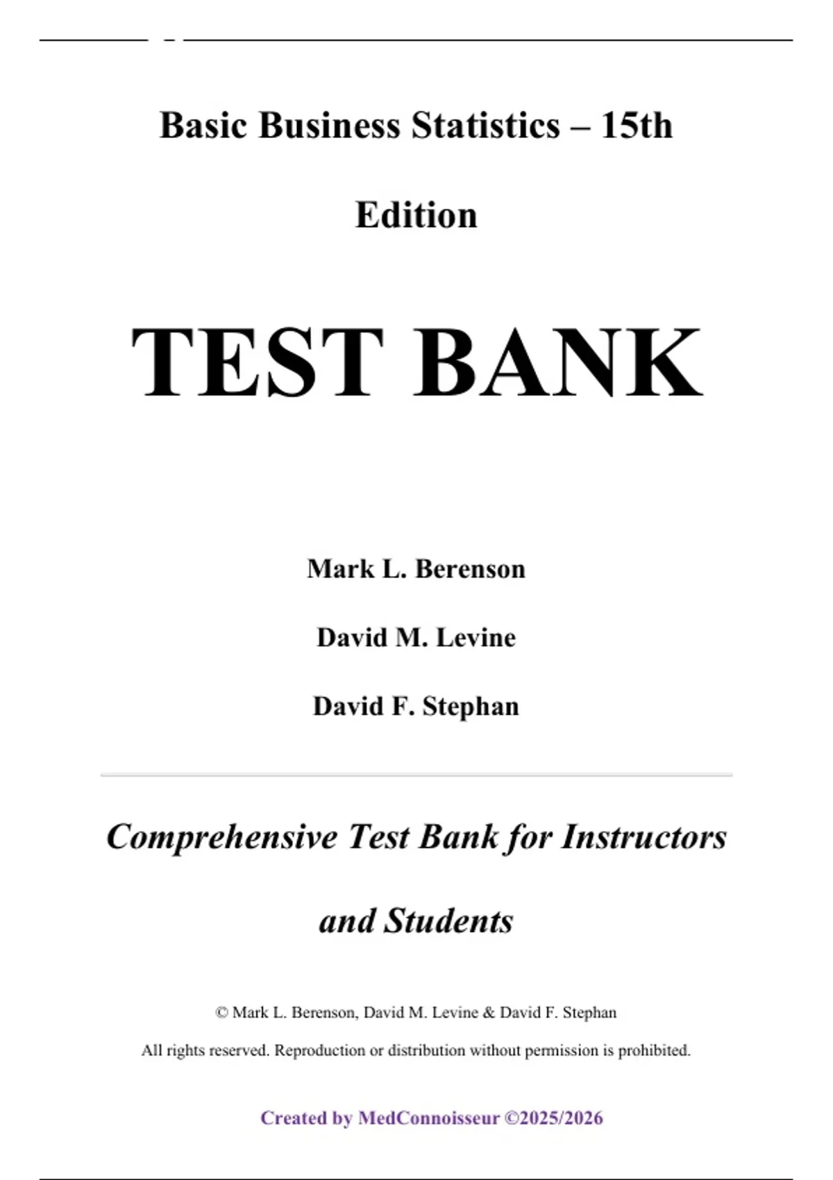 ,Test Bank For Basic Business Statistics, 15th Edition by Mark L. Berenson David M. Levine David F. Stephan