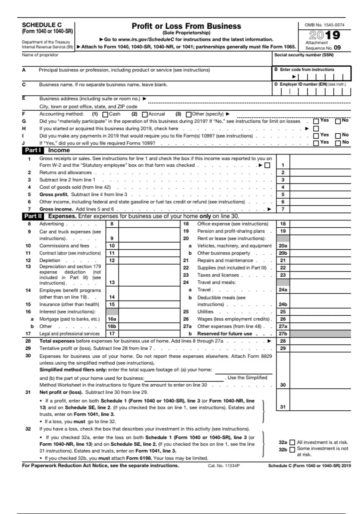 For Paperwork Reduction Act Notice, see the separate instructions. Cat. No. 11334P Schedule C (Form 1040 or 1040-SR) 2019