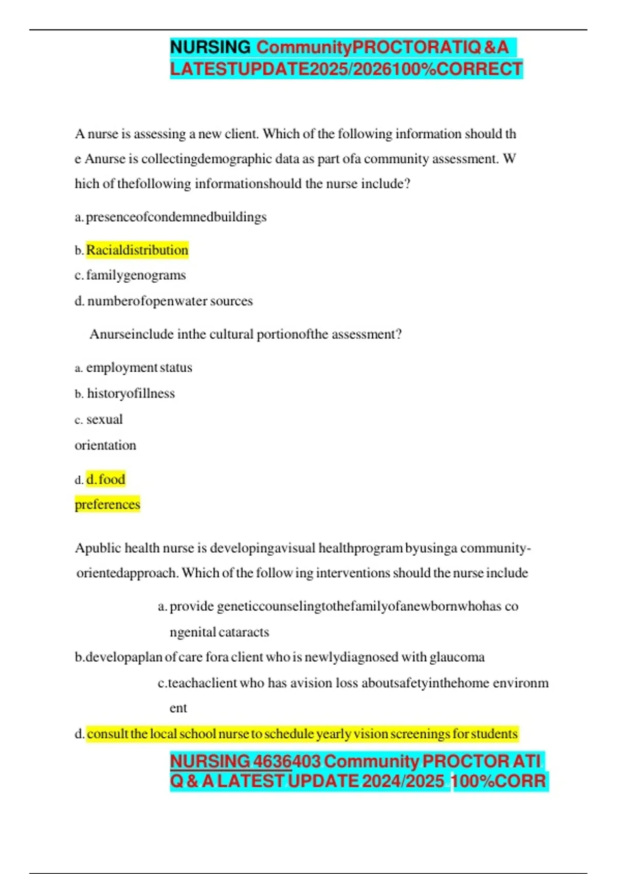 NURSING 4636403 Community PROCTOR ATI QUESTION