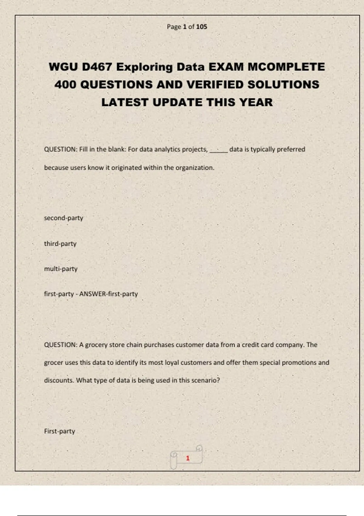 WGU D467 Exploring Data EXAM MCOMPLETE 400 QUESTIONS AND VERIFIED SOLUTIONS LATEST UPDATE THIS YEAR