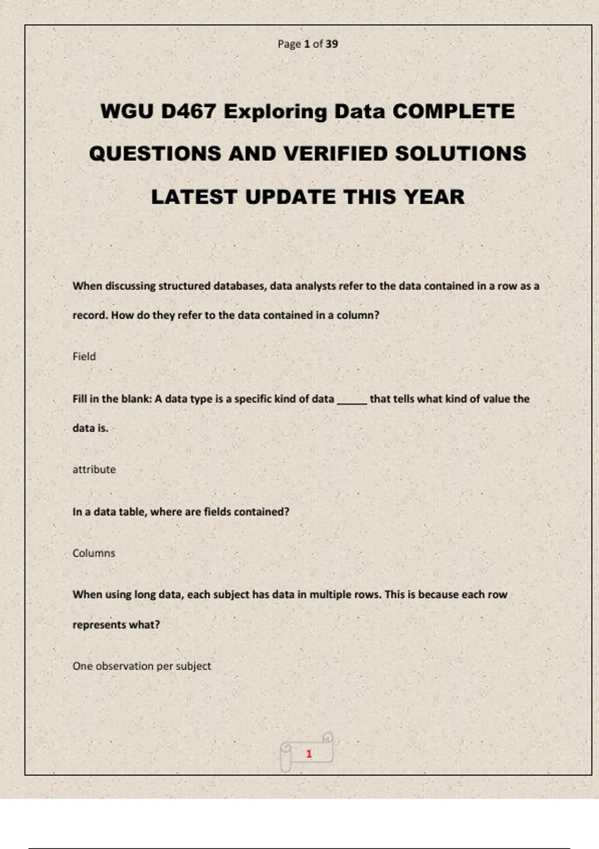 QUESTIONS AND VERIFIED SOLUTIONS