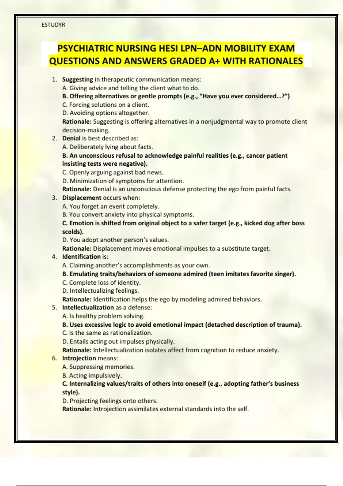 PSYCHIATRIC NURSING HESI LPN–ADN MOBILITY EXAM